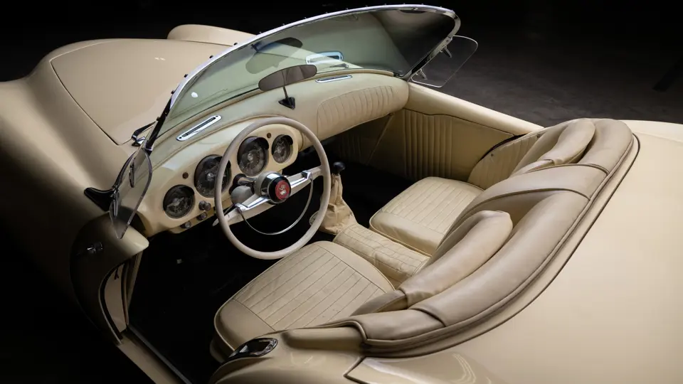 Carrosserie en fiberglass, roadster à portes coulissantes et capote repliable dans un logement devant le coffre arrière et communiquant avec lui. Capote en 3 positions : fermée, ouverte et milord.