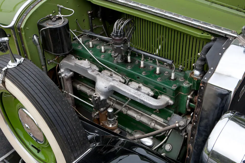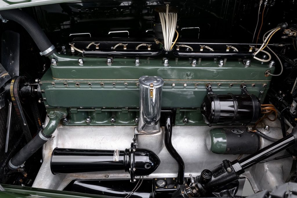 Super Eight : 5715 cm3, 88,9×127, 145 chevaux à 3200 tours, carburateur Stromberg Duplex 2 1/16, 1003 empattement : 135″ et 1004 empattement : 142″, 2 avertisseurs sonores (1 sur Eight), feux de position sur les ailes et à l’arrière, lumières de courtoisie dans l’habitacle.
