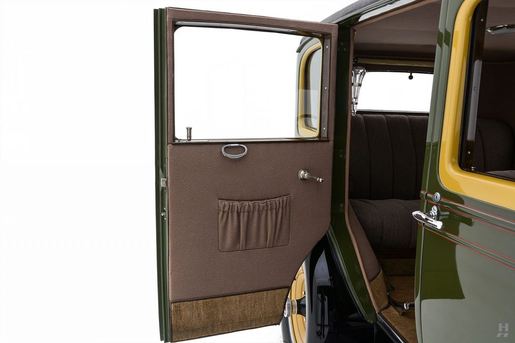 7 Passenger Sedan style 334: Berline 4 portes, 7 places avec 2 sièges occasionnels repliables, garniture drap de laine, colonne de direction 37°49,