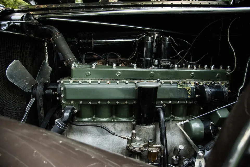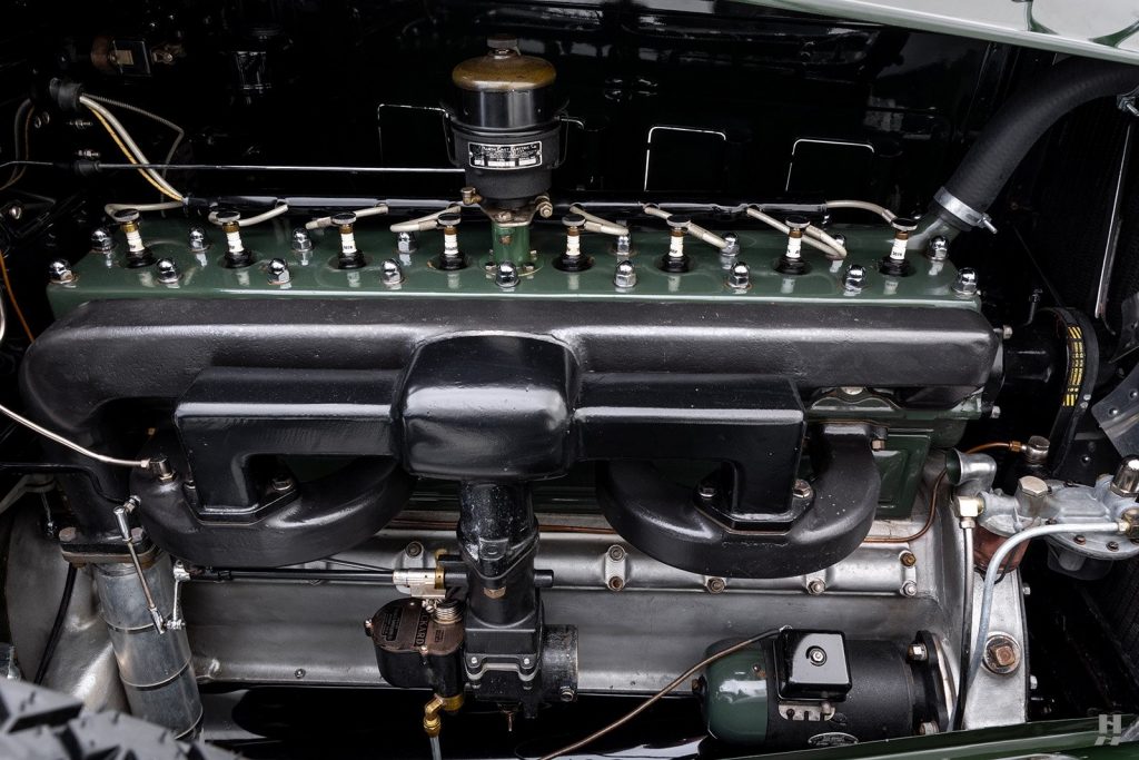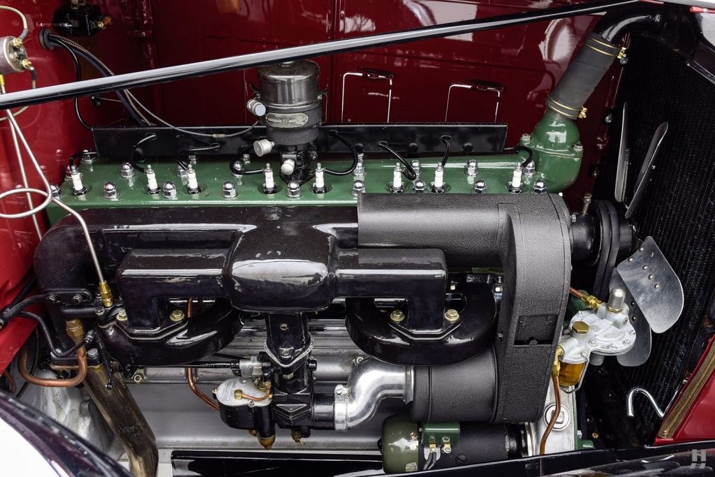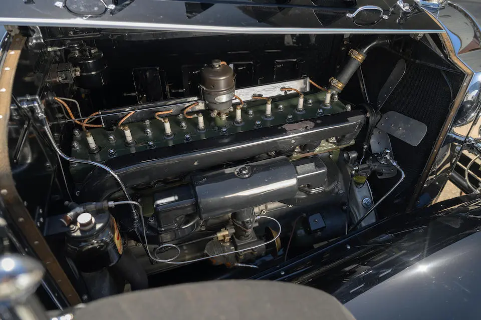 Allumage par bobine fixée sur la cloison pare-feu et distributeur Packard-Delco placé sur la culasse entre les cylindres 4 et 5 et entraîné par l’arbre à cames via une cascade de pignons; générateur entraîné par chaîne à l’avant droit du carter de vilebrequin.