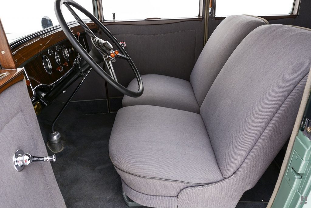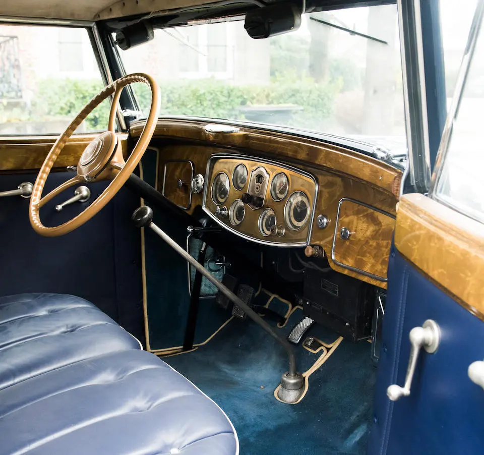 Ligne reprise de la Six avec finition améliorée : thermomètre d’eau, pompe de gonflage centralisée accolée à la boîte de vitesses. Les voitures fermées ont des garnitures en drap
