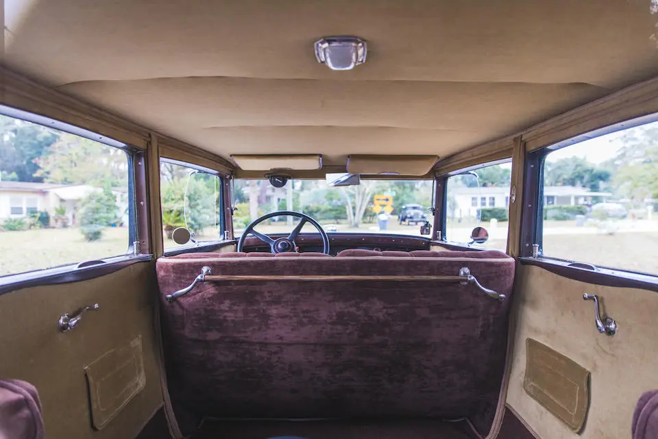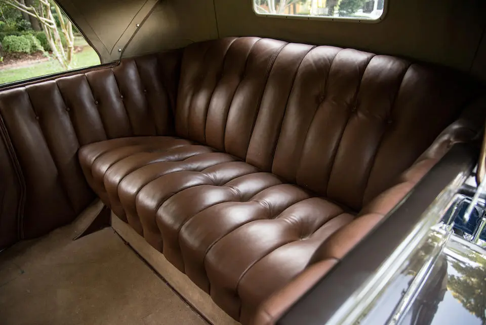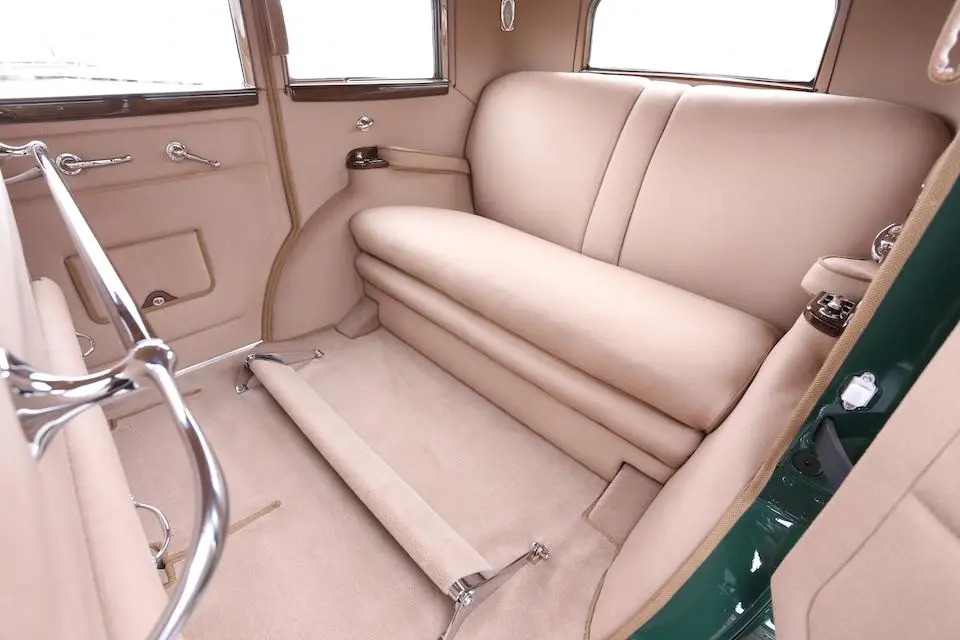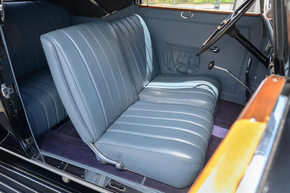 4 Passenger Coupé style 337 : Coach avec banquette arrière et siège passager repliable, garnitures en drap, colonne de direction 37°49.