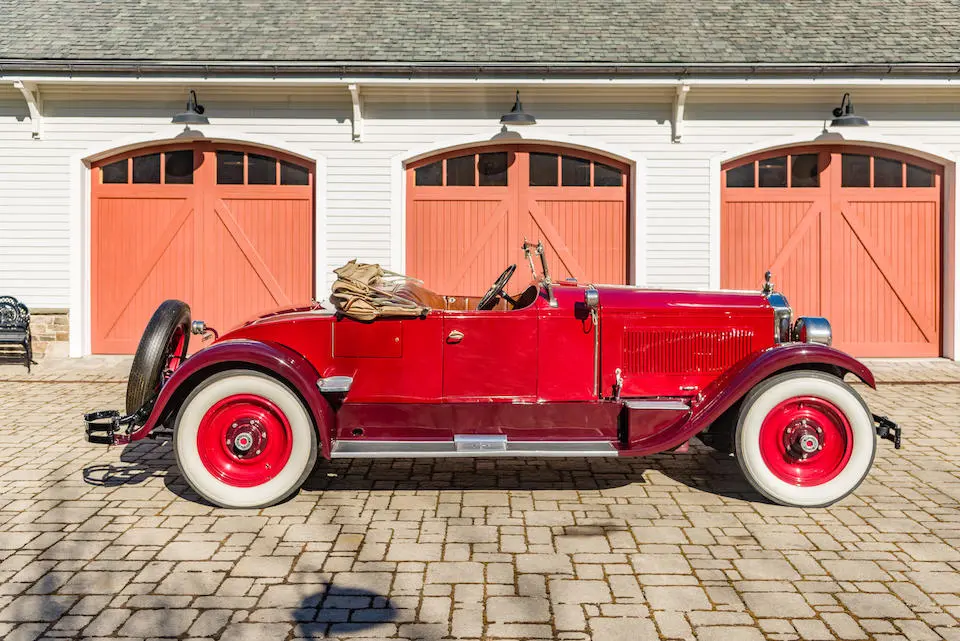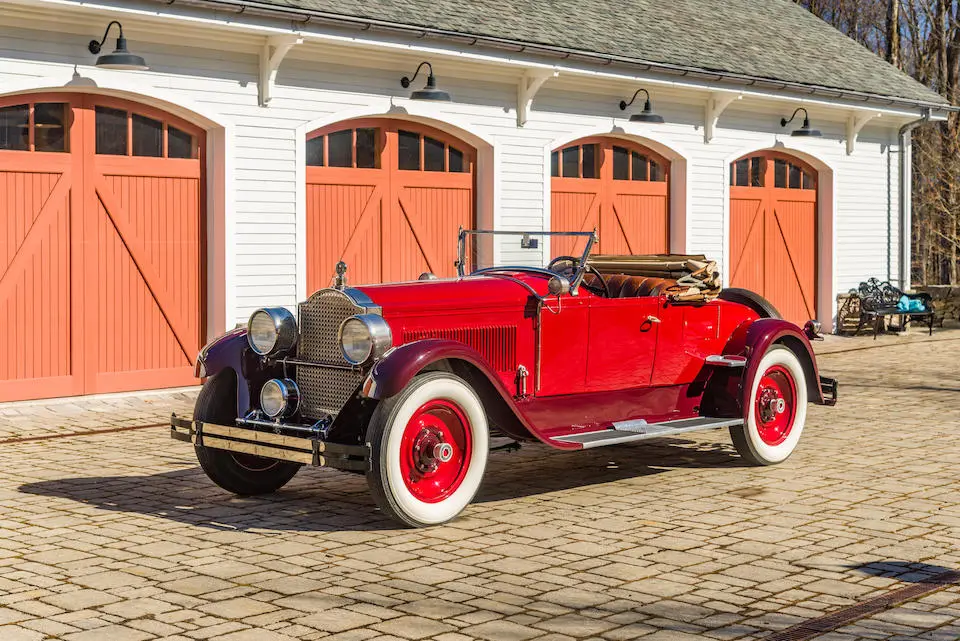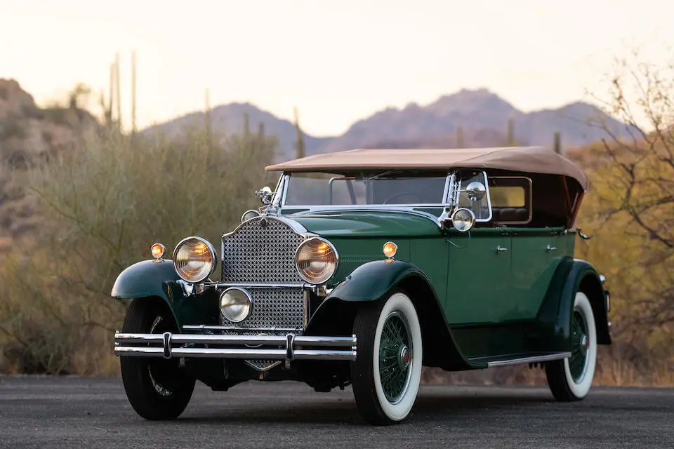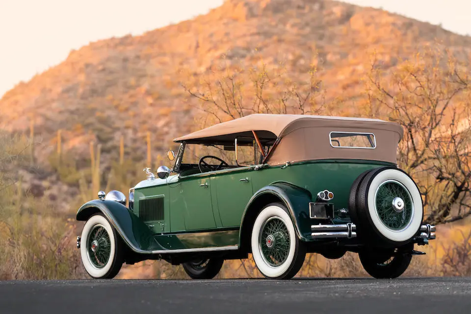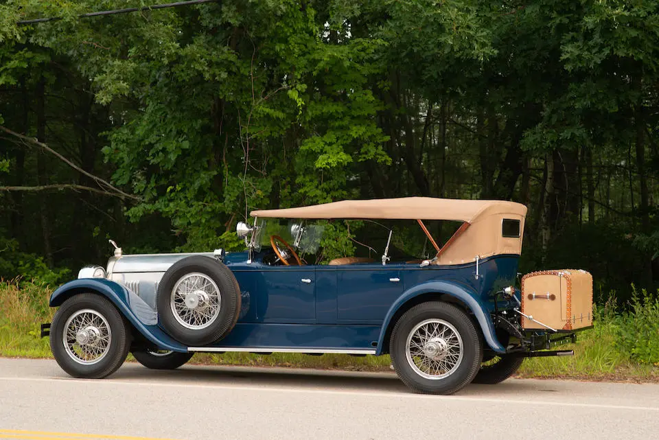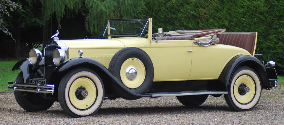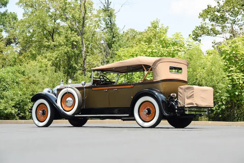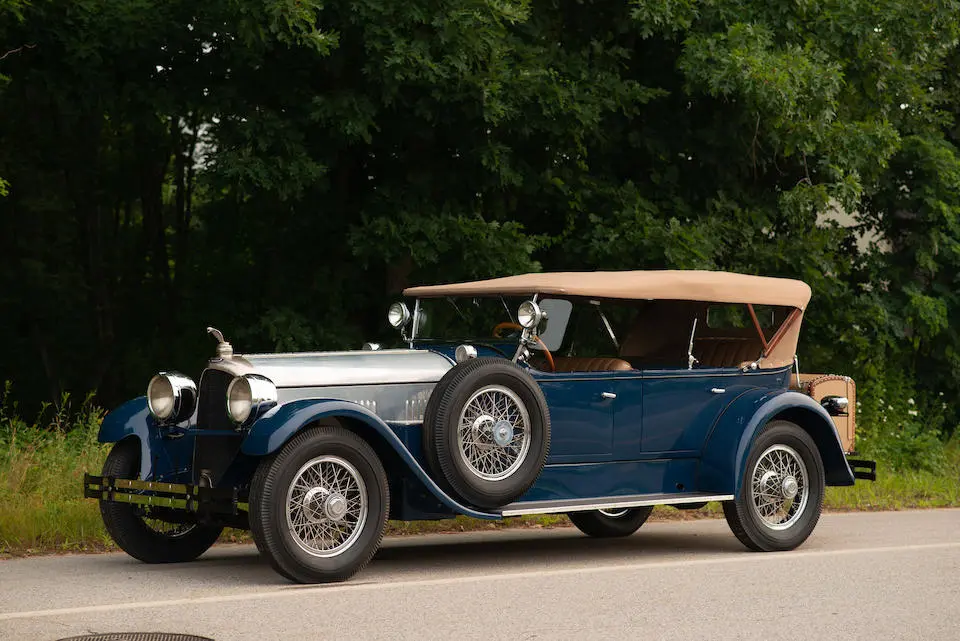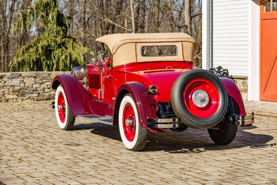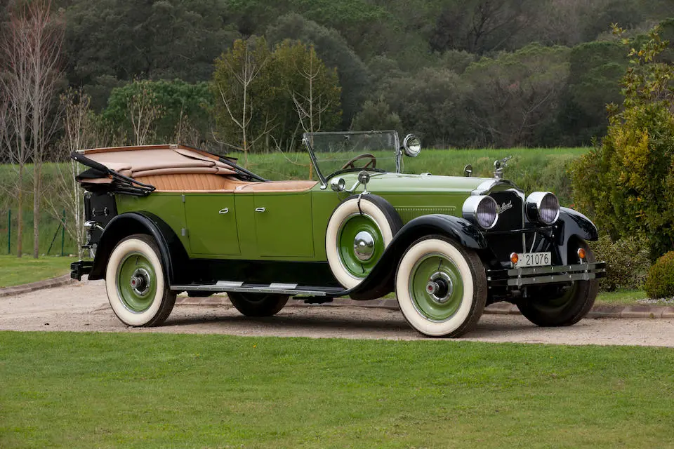 4 Passenger Sport Phaéton style 521 : Torpédo 4 portes, 4 places, double pare-brise, jantes à rayons chromés.