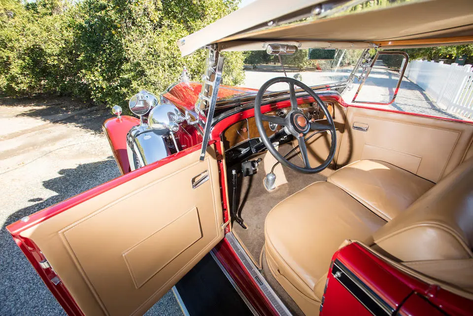 7 Passenger Touring style 330 : Torpédo 4 portes, 7 places avec 2 sièges occasionnels repliables, garnitures cuir, colonne de direction 37°49,