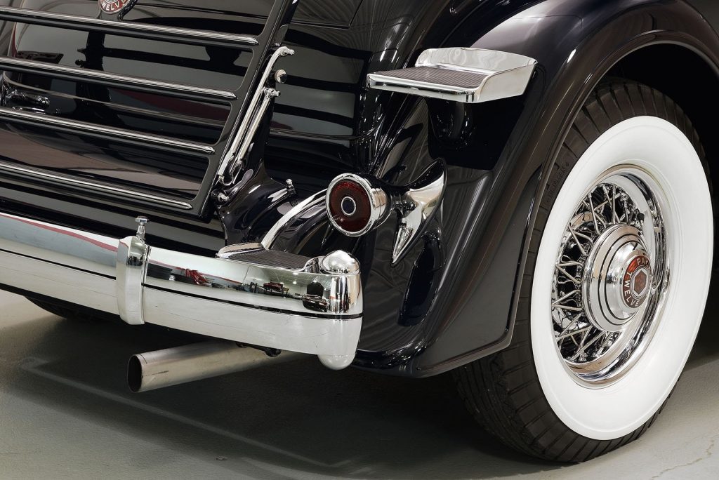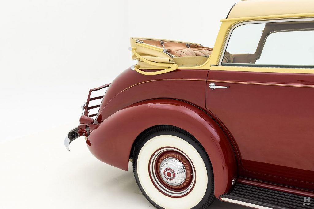 09/1937 : 16e série pour l’année modèle 1938 : Nouveau dessin des ailes avec découpe pour les roues de secours latérales, nouveau pare-brise en V et calandre plus droite.
