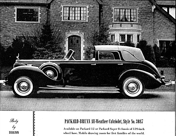 Le carrossier Brunn propose : All weather Cabriolet Style 3087 : Landaulet avec capote en cuir détachable au dessus du chauffeur ou Touring Cabriolet avec toit fixe acier au dessus du chauffeur (comprenant 2 petites fenêtres en verre teinté), disponibles en Collapsible (Landaulet) ou non Collapsible (toit fixe avec faux compas sur la custode arrière).
