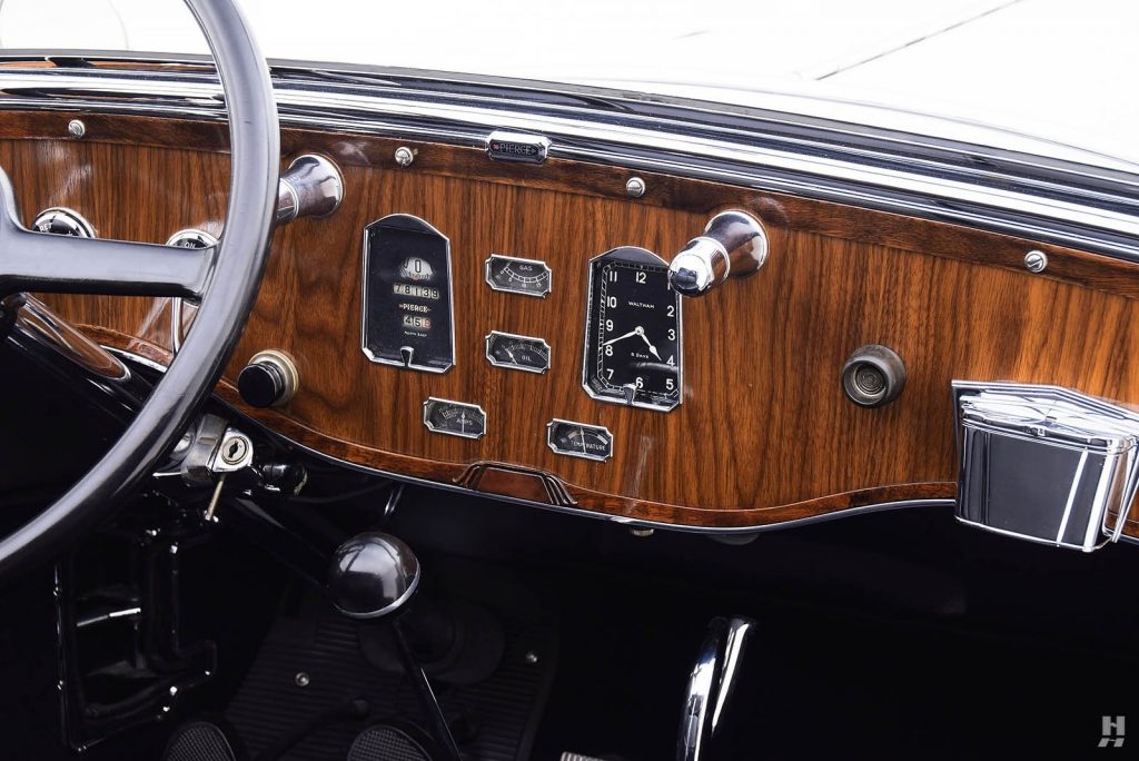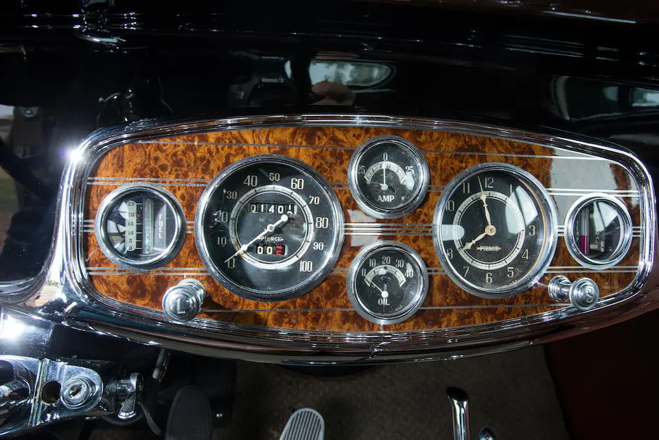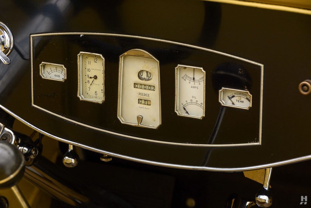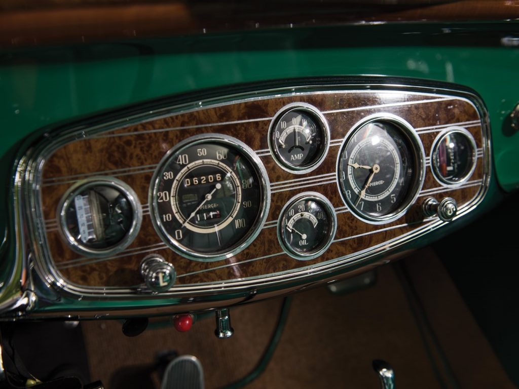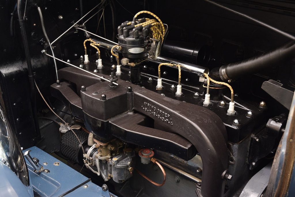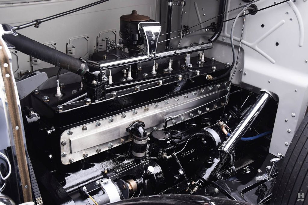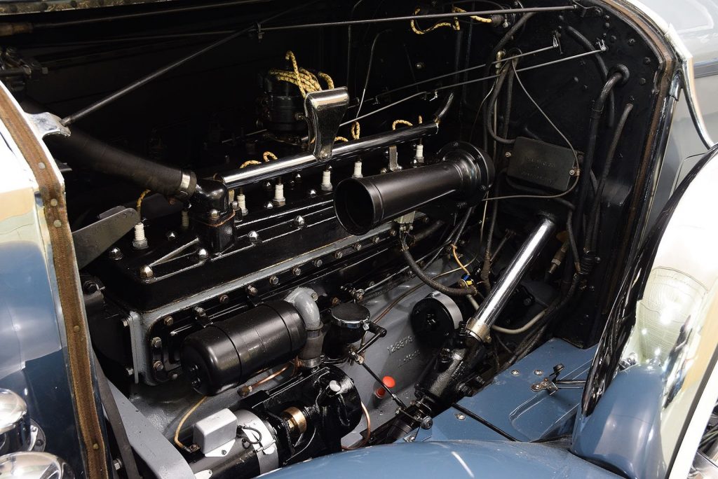 Nouveau 8 cylindres en ligne avec culasse en L étudié chez Pierce. Ce nouveau moteur est 25% plus puissant que l’ancien 6 cylindres, malgré une cylindrée inférieure de 12%, il est aussi plus léger de 50 kg et n’a rien à voir avec le 8 cylindres Studebaker.