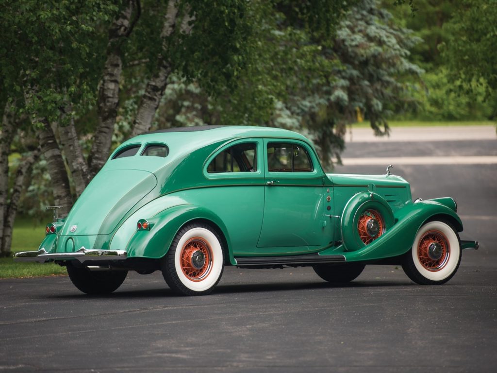 Pierce Arrow est racheté par un groupe d’investisseurs de Buffalo après la faillite de Studebaker. Le célèbre pilote Ab Jenkins amène un prototype au lac salé de Bonneville ou il établit 79 records mondiaux avant de regagner les usines de Buffalo par la route (2000 miles). 1934 : Lancement d’une petite série 840A dérivée de la Silver Arrow, disponible en 8 et 12 cylindres.