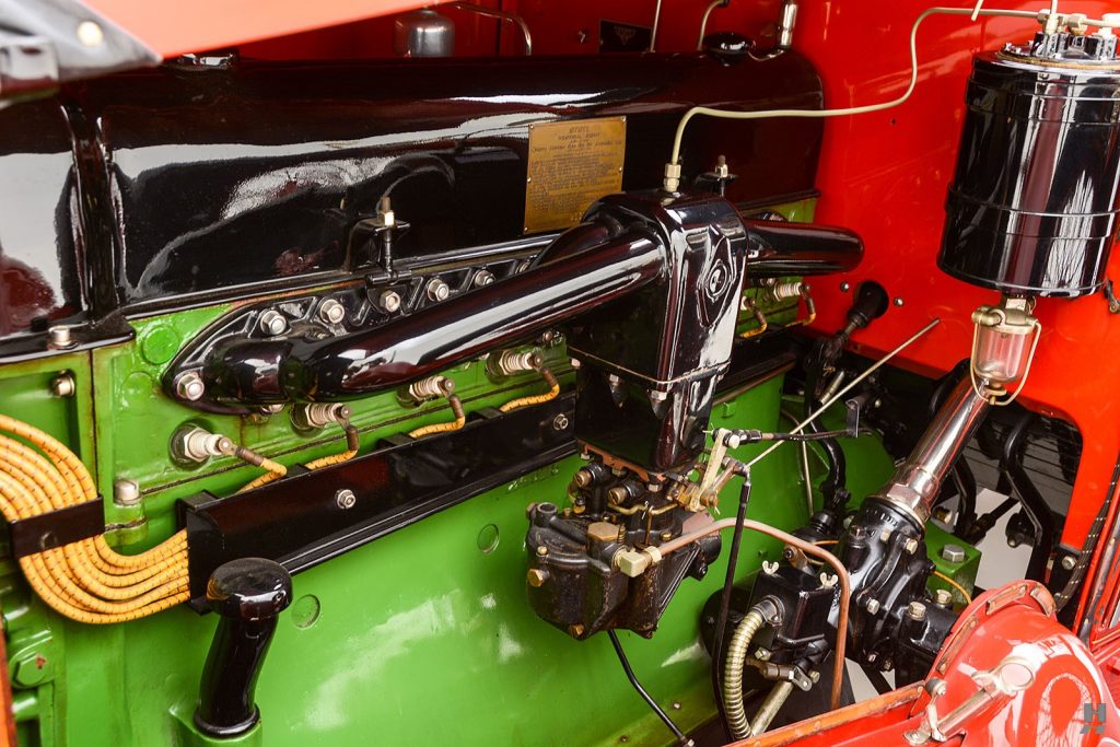 Double allumage par 8 bougies placées sous la tubulure d’admission et 8 autres du côté échappement. L’allumage peut être retardé par un petit levier au centre du volant ou accéléré par un accélérateur à main.
