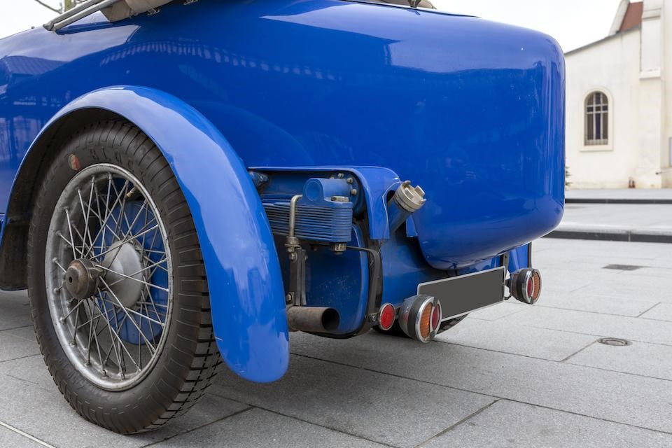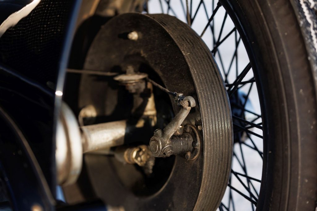 Tambours à l’avant et à l’arrière en acier avec frette en alliage léger et ailettes de refroidissement. Commande mécanique par câbles avec équilibreur monté sur le palonnier de la pédale pour égaliser le freinage des deux côtés de la voiture.