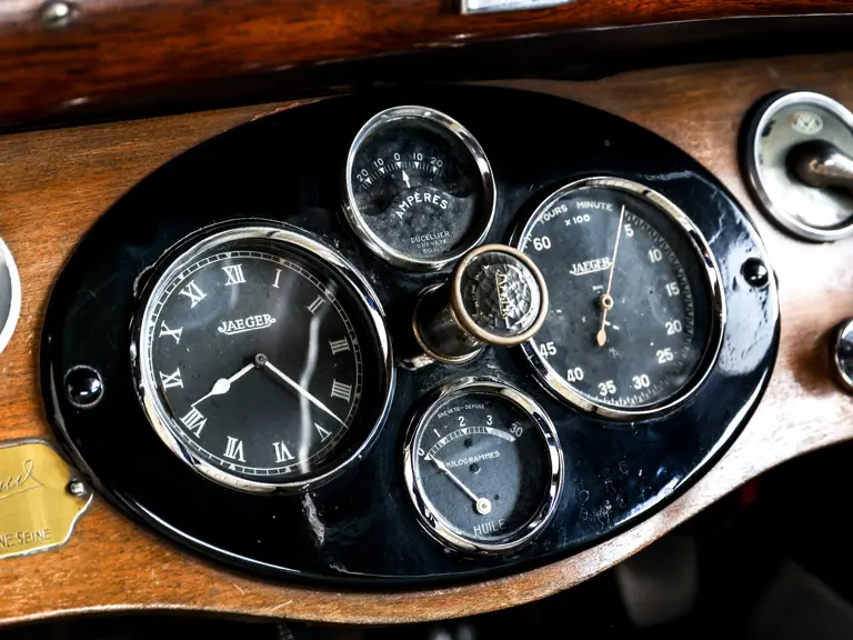 Bobine et distributeur commandé par une vis sans fin depuis le bout de l’arbre à cames. Démarreur Marchal-Vaucansson sur le côté droit du bloc, génératrice en bout de vilebrequin vers l’avant du moteur. Avance automatique avec possibilité de réglage manuel depuis le tableau de bord. Ordre d’allumage : 1-6-2-5-8-3-7-4 (les premiers moteurs : 1-5-2-6-4-8-3-7).