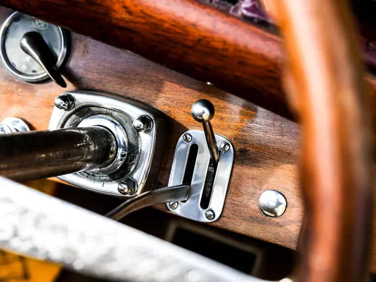 Boîte de vitesses à 4 rapports, 4e en prise directe, levier de vitesses central au plancher. Carter en aluminium. L’arbre primaire est relié à l’arbre de transmission via un joint Hardy et une rotule (avec système de lubrification) pour assurer un certain débattement, de même qu’à l’arrière pour la liaison avec le pont.