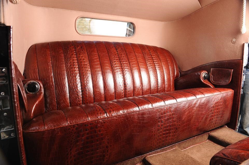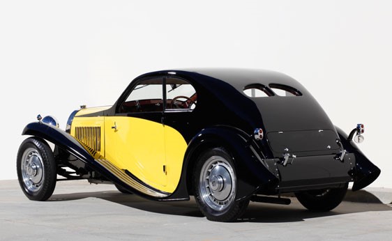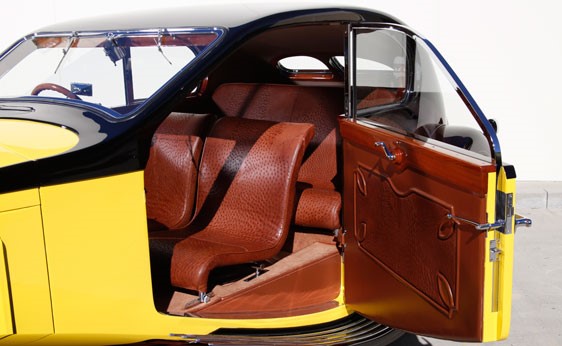 ? : Vendue (AUST), recarrossée en copie de Coupé Superprofilé (dessin Jean Bugatti), noire et jaune, cuir d’autruche brun.
