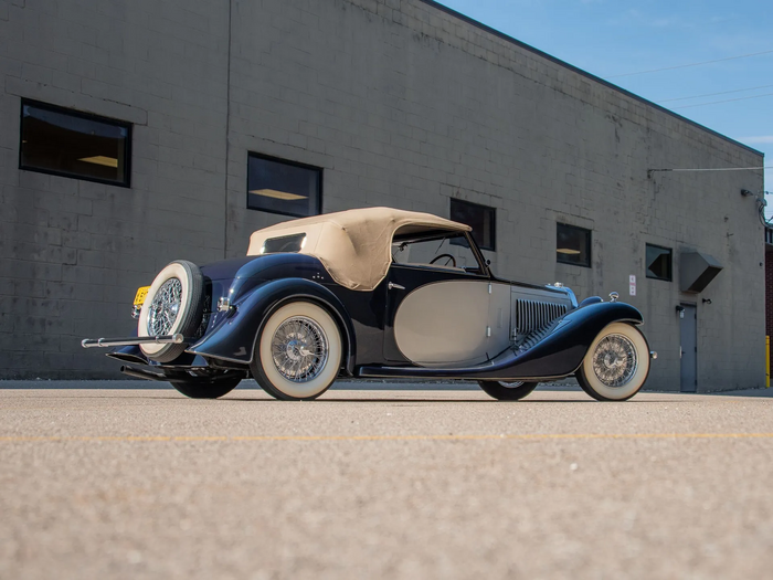 Présentation du cabriolet Aravis, dessin Jean Bugatti carrossé chez Gangloff à Colmar.