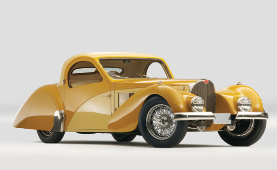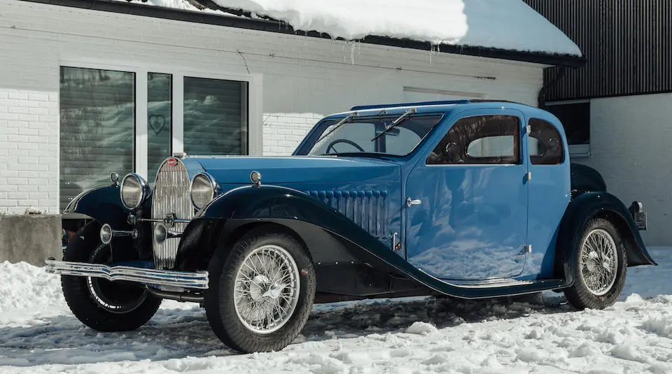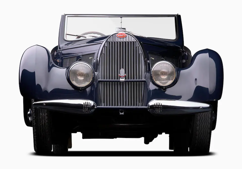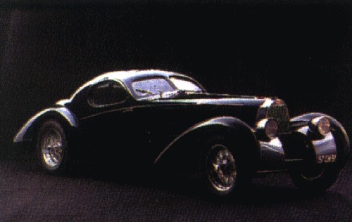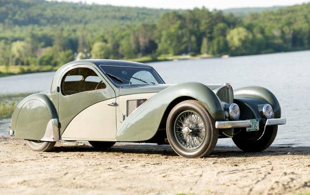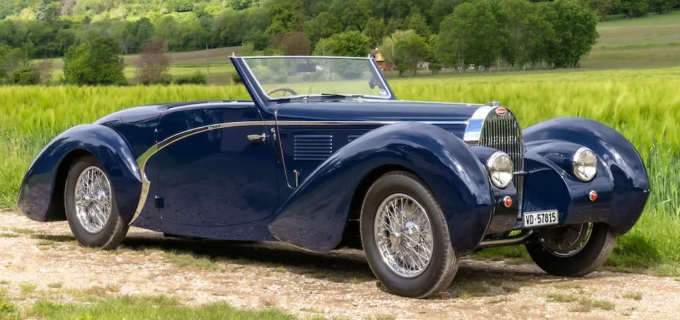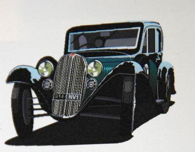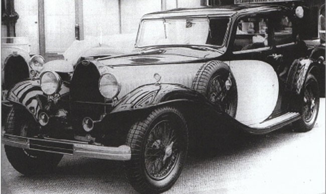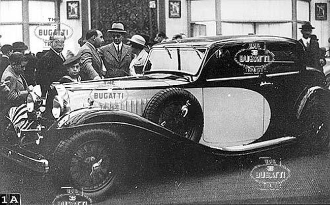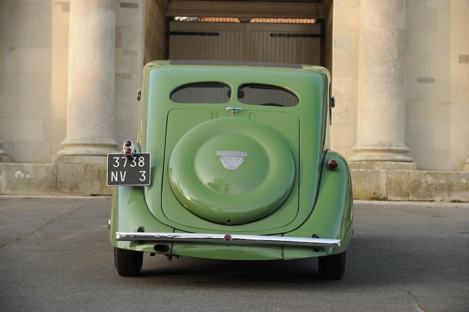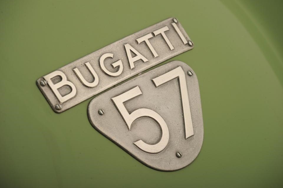 57.100 : 1933, 1er prototype de la T.57 étudié par Jean Bugatti, suspensions avant par roues indépendantes, appellation « crème de menthe ».