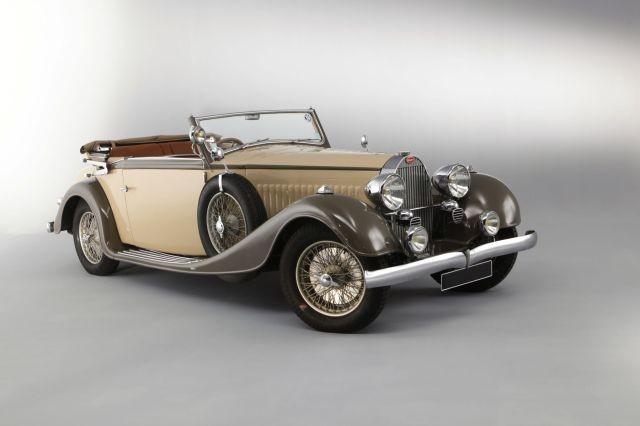 57.127 : 1934, Cabriolet par Franay, moteur 52, pare-chocs en V, entourage de calandre chromé, jantes noires,