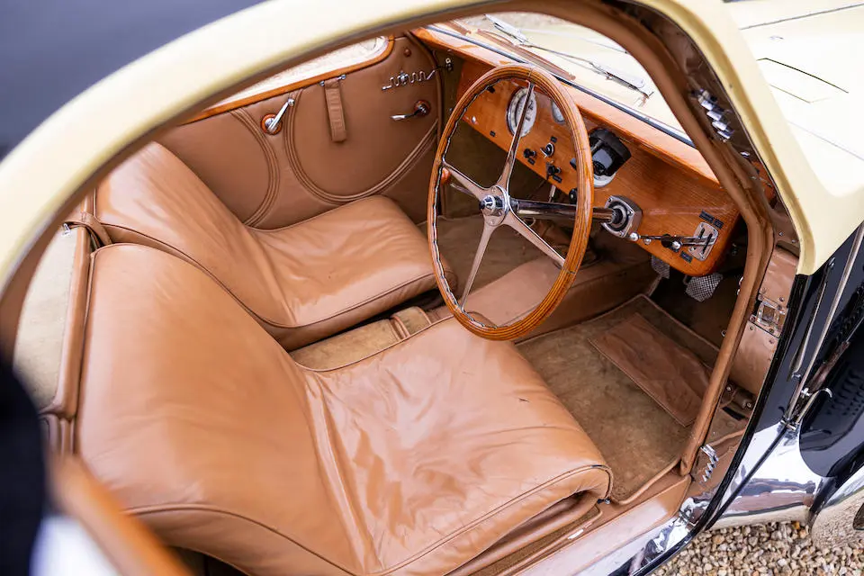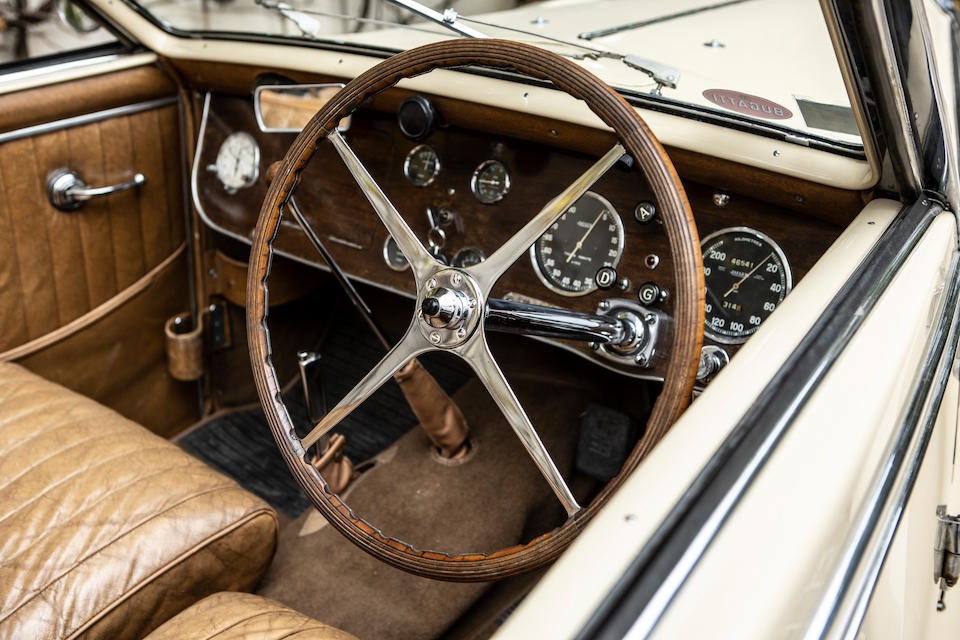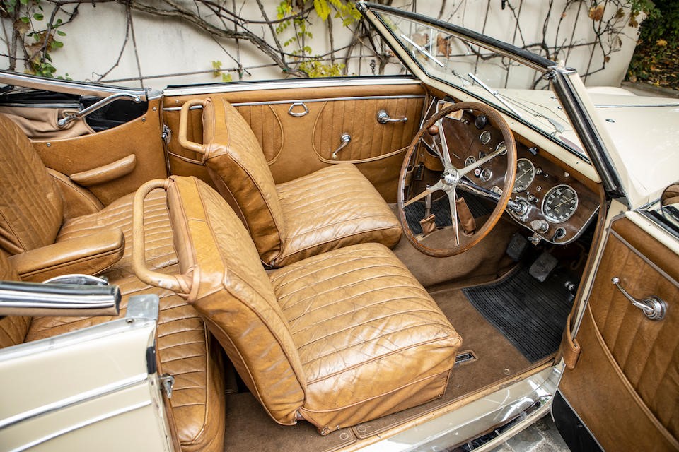 57.836 : 1939, T.57C Cabriolet Stelvio, dernière Stelvio avant la guerre, moteur 93C, par Gangloff (livrée 08/06/1939, terminée 24/07/1939), Ivoire, cuir brun.