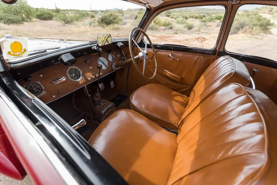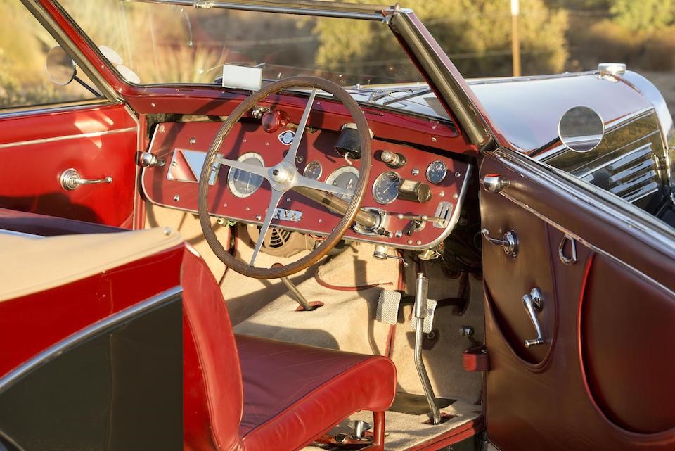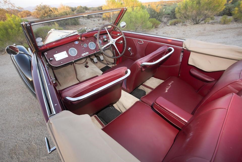 Recarrossée en cabriolet par Paul Nee (?). Spécifications 1938, freins à commande hydraulique.