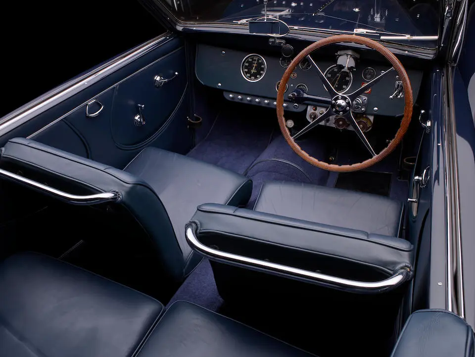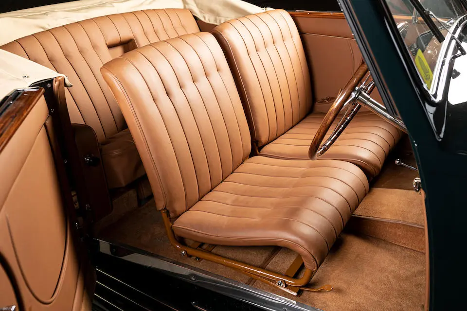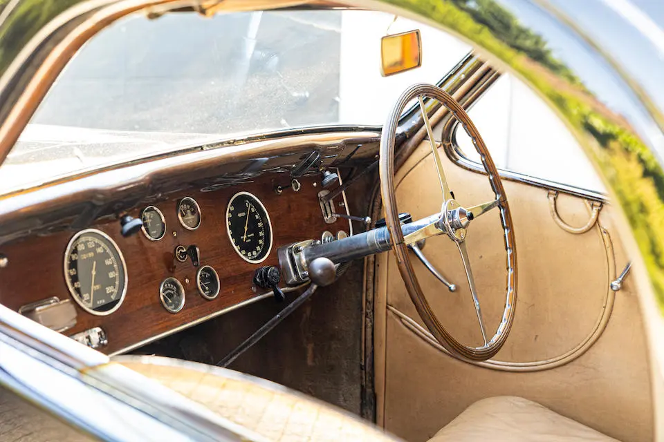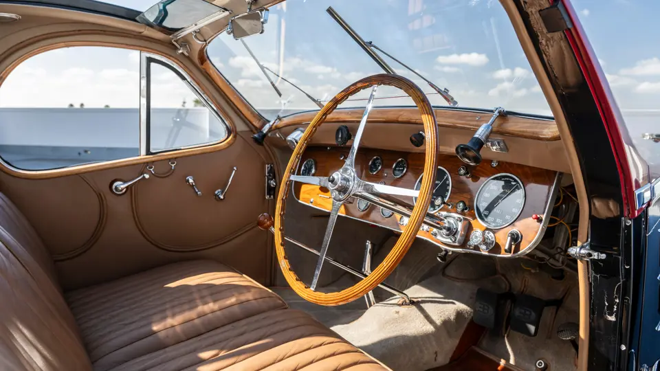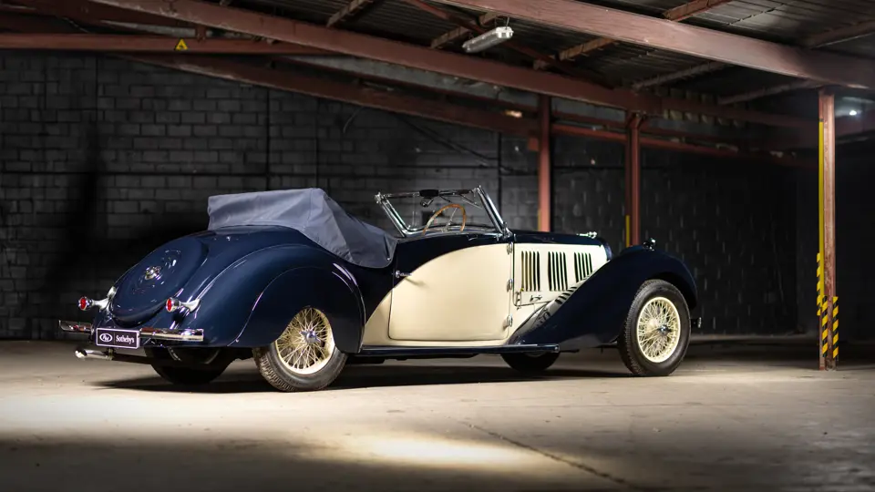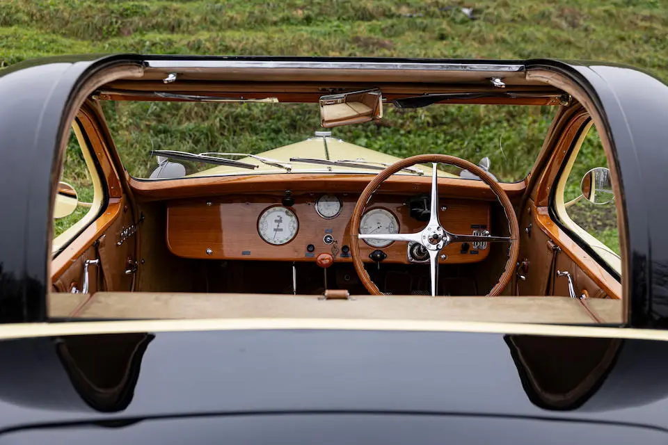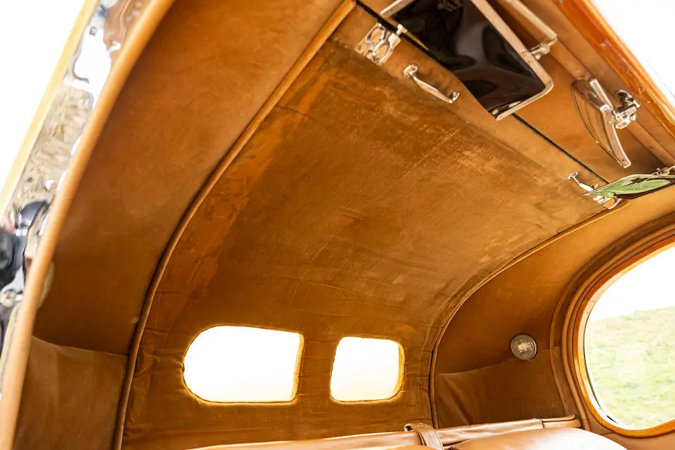 57.787 : 1939, T.57C Faux cabriolet par James Young, moteur C66, toit ouvrant, picnic tables dans les dossiers de siège avant, sièges arrières individuels, roues à rayons chromés.