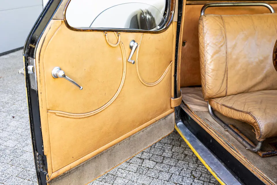 57.119 : 02/06/1934, Coach Ventoux usine, 1er de la série (dessin Joseph Walter), moteur 34, essieu avant brisé, la seule avec toit ouvrant, 3 charnières de portes, amortisseurs réglables, cuir havane.