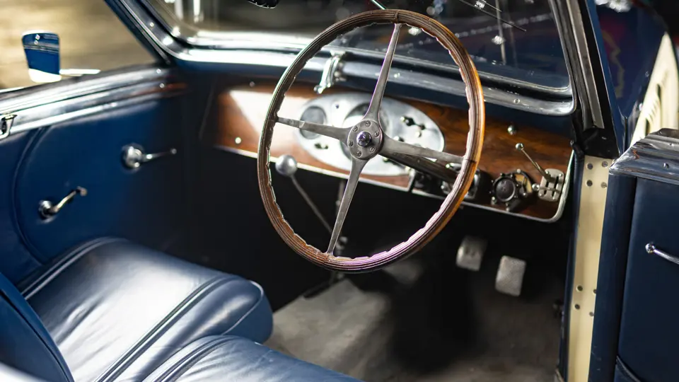 Recarrossée en cabriolet Aravis d’après les plans de Gangloff (dessin 3942) par Vintage Cars, Southampton (G-B).