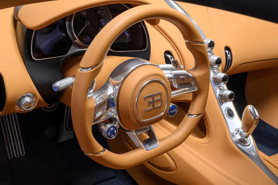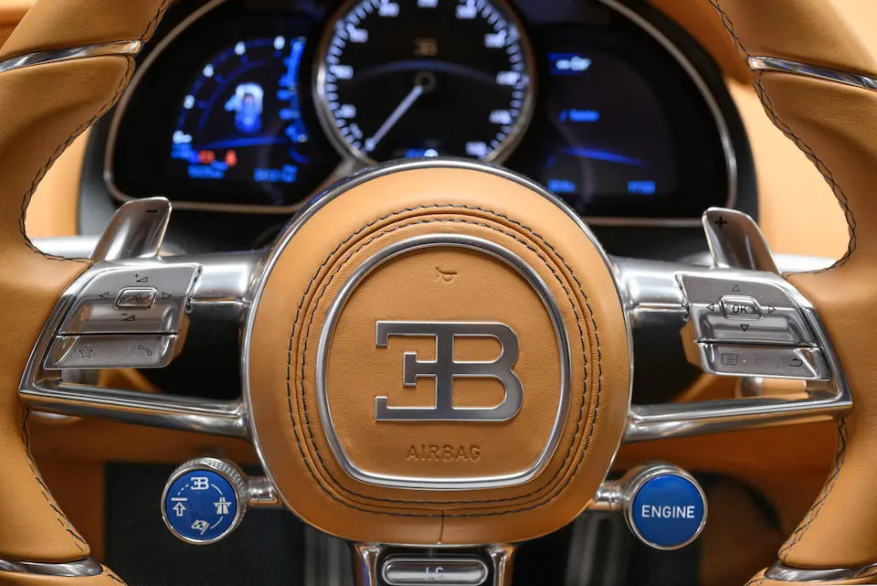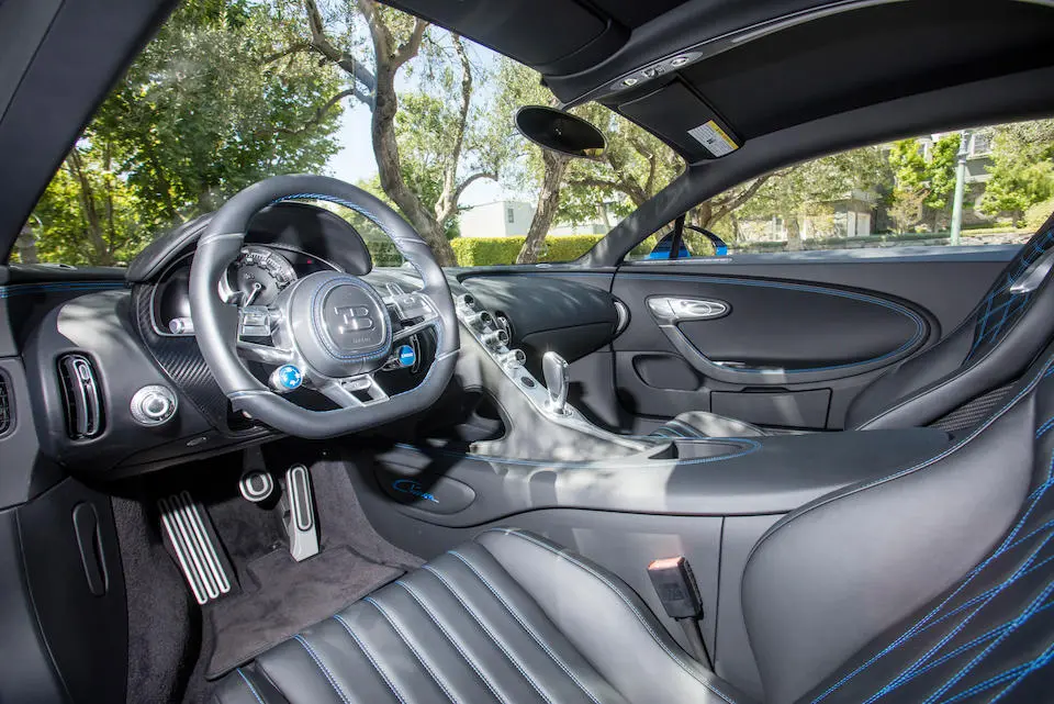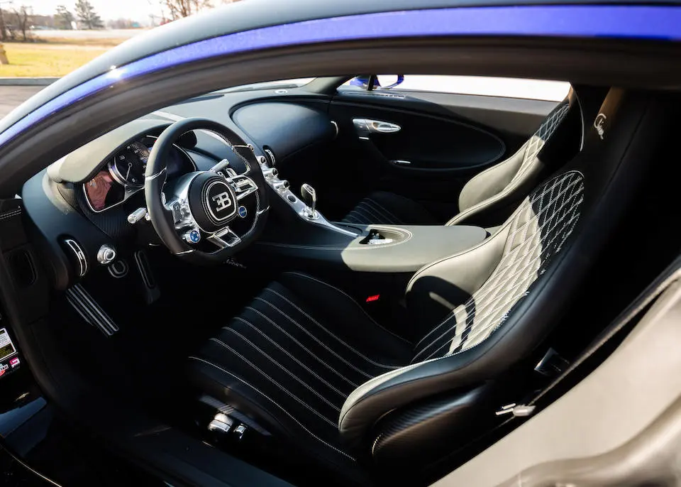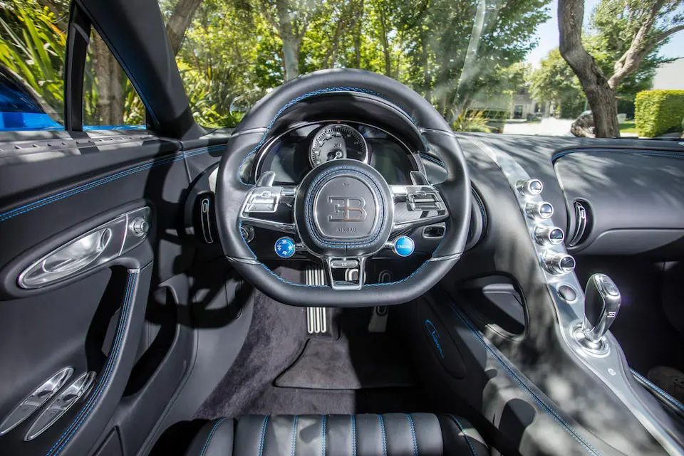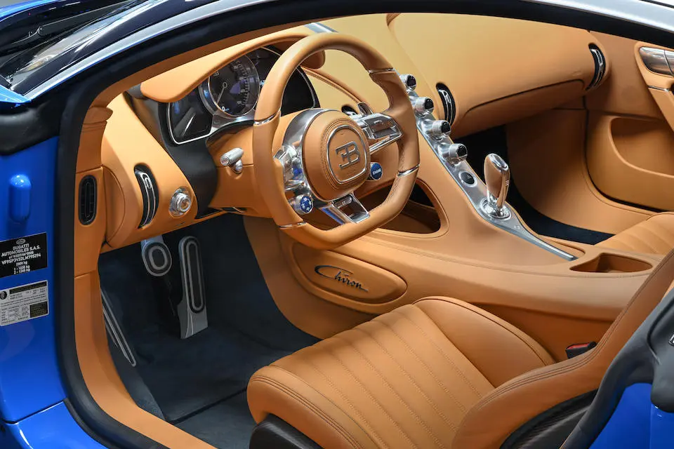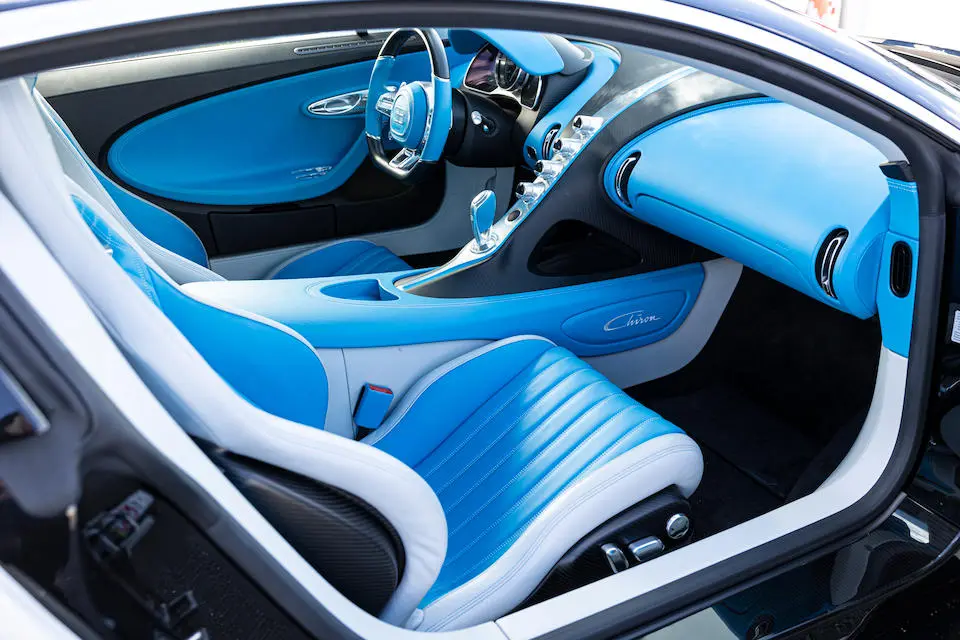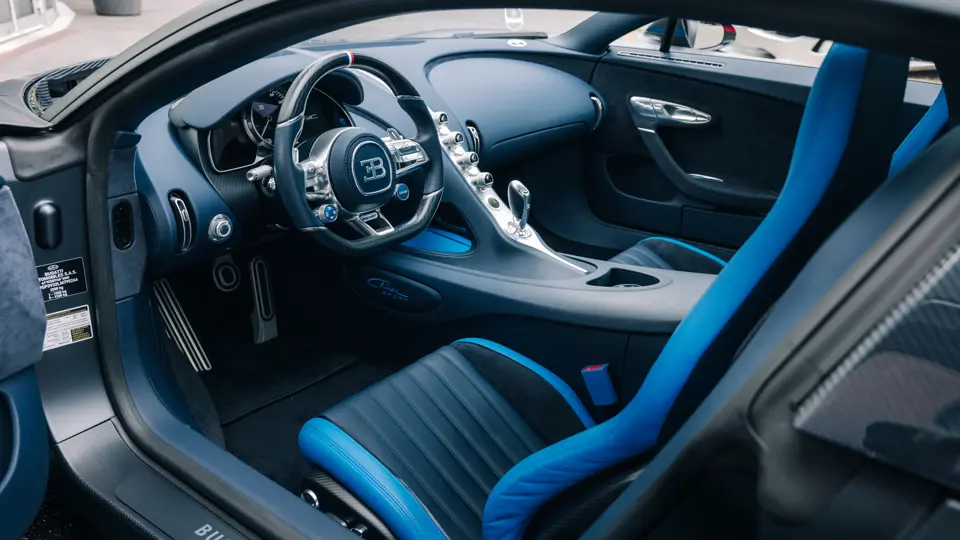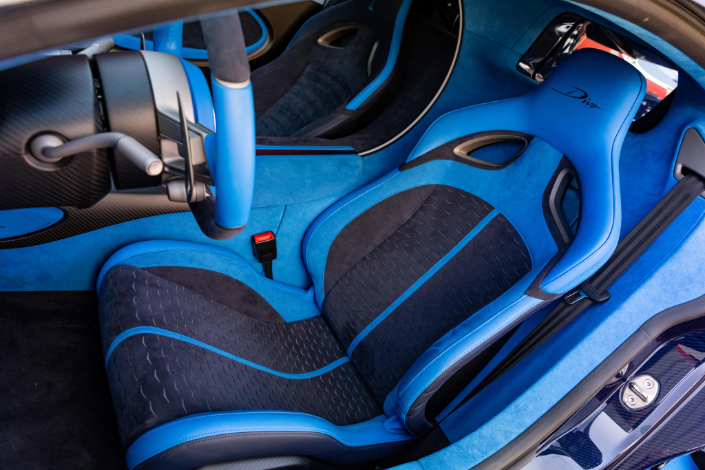 VF9SP3V32LM795294 : 2020, Chiron, Jantes Caractère, étriers bleus, Bleu Atlantique/Bleu de France, inserts aluminium poli, cuir Terre d’or, moquette bleue à passepoils bleus.