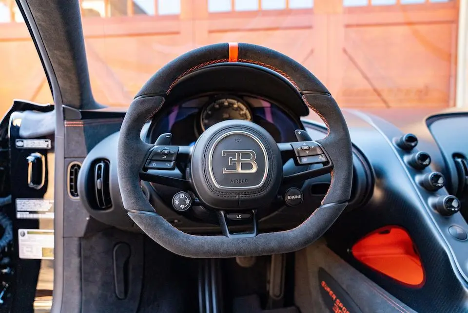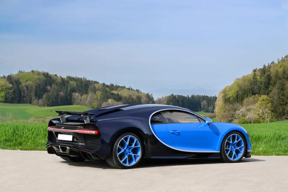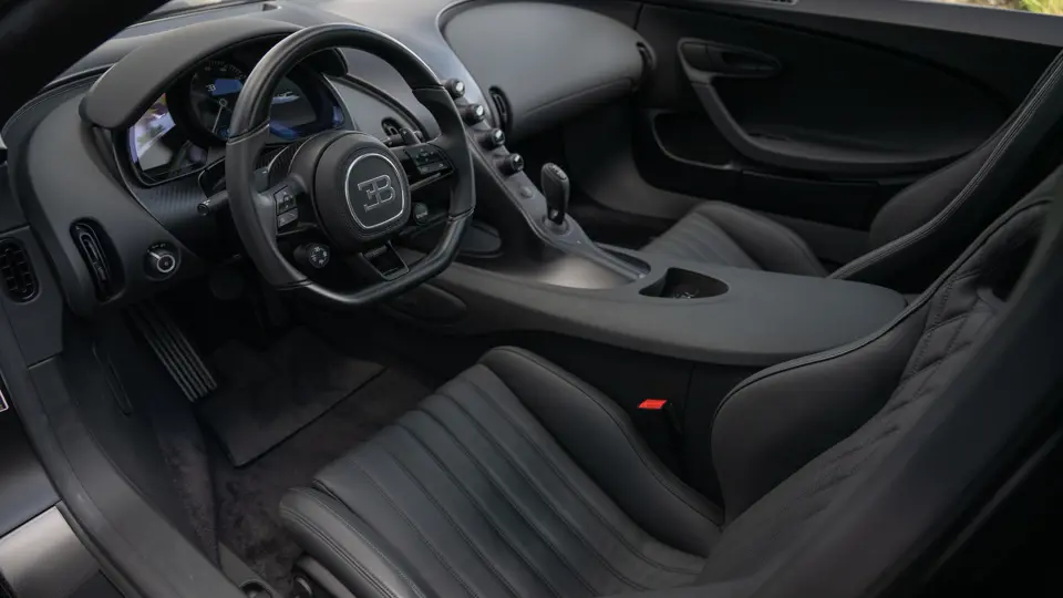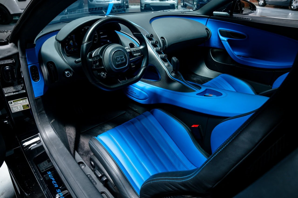 VF9SW3V30PM795058 : 2023, Chiron Super Sport, Black Carbon/Bleu de France, cuir Beluga Black/Bleu de France.