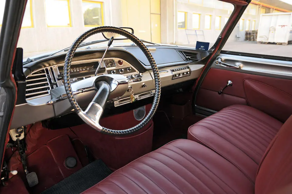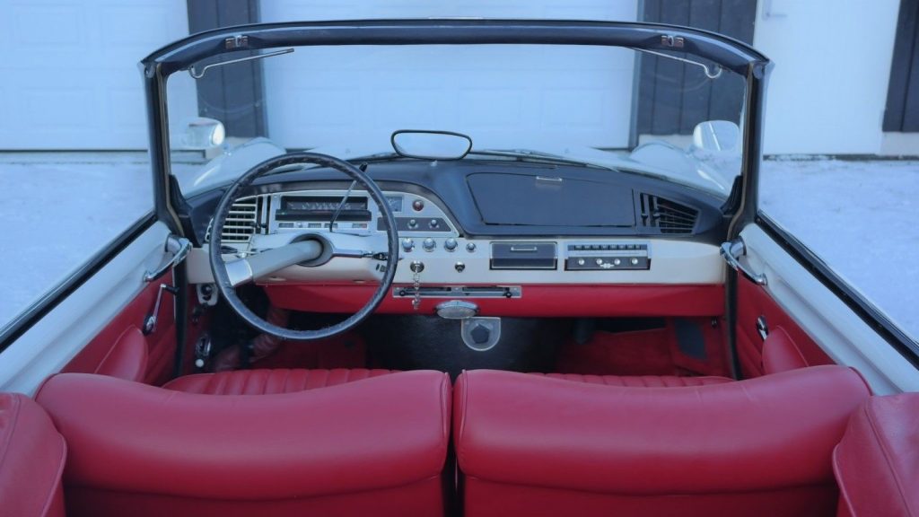 3281581 : 1963, ID 19, Cabriolet Palm Beach par Chapron (caisse 7492), moteur 98060139, capote électrique, vitres électriques, autoradio, antenne électrique, Rouge Rubino, cuir naturel, capote simili noir.