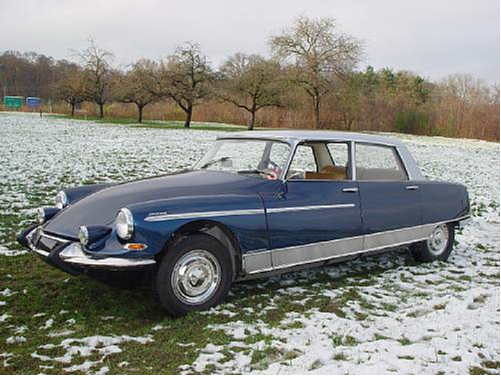 4637101 : 1969, DS 21 Berline Majesty par Chapron, 1/27, 1/3 avec phares carénés et directionnels, climatisation, enjoliveurs de roues et bas de caisses en aluminium poli, tableau de bord 3 compteurs peint imitation ronce, Bleu nuit, cuir havane.