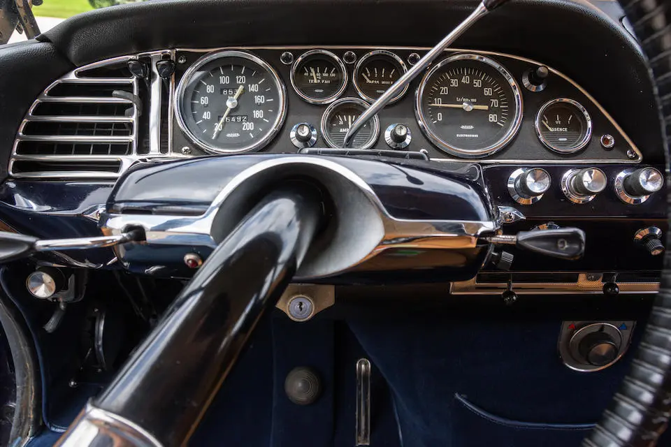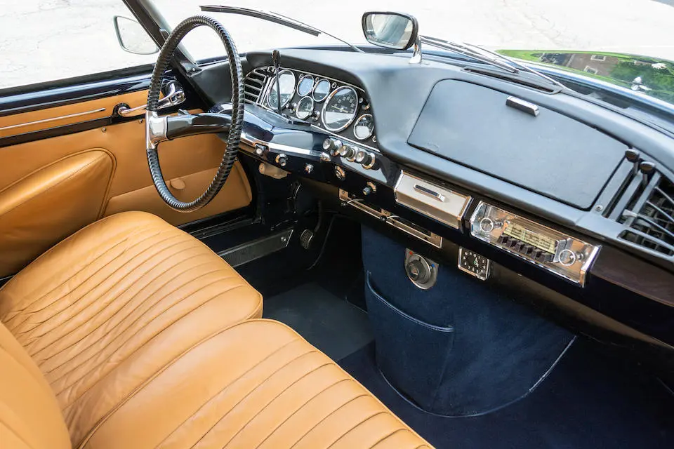 435.0009 : 10/12/1965, DS 21, Concorde Coupé par Chapron 2e série (1/6, commande 7550, livrée 10/1965), moteur DX 000712, jantes à rayons Robergel, phares antibrouillard Marchal, intérieur cuir, vitres électriques, radio Radiomatic FM, antenne Hirschmann, instrumentation Jaeger, Bleu nuit, toit gris clair, cuir brun clair.