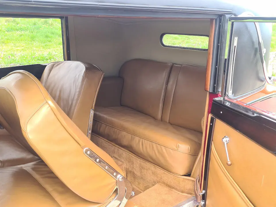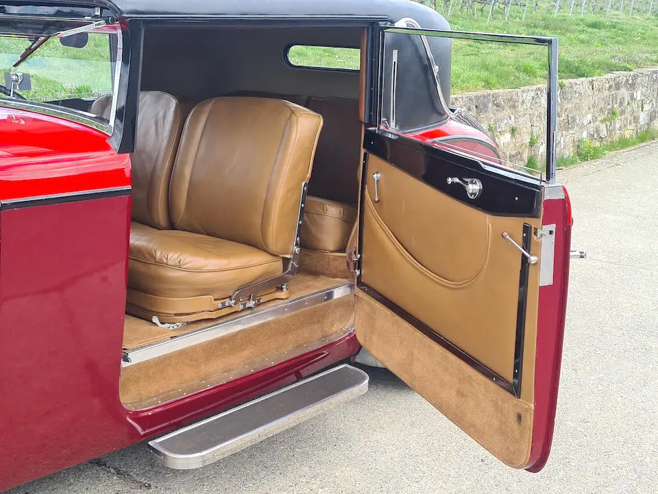 34737 : 1932, D8C, Faux-cabriolet par Vanvooren (caisse 1818), carrosserie acier avec capot aluminium, moteur 1377, Rouge/marron, cuir brun.
