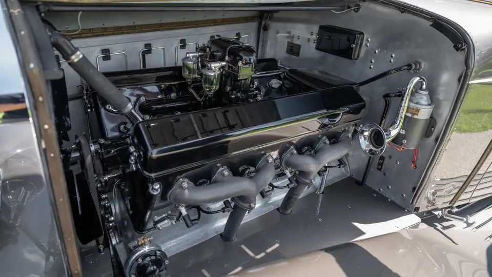 Nouveau bloc 54 CV dérivé des moteurs aviation V8 et 12Y de la marque. Chaque bloc est usiné dans une bille d’acier pesant 318 kg et isoné du châssis par des silentblocs en caoutchouc. Seul le moteur Bugatti T.41 (Royale) à diffusion anecdotique (7 exemplaires) affiche une puissance supérieure.