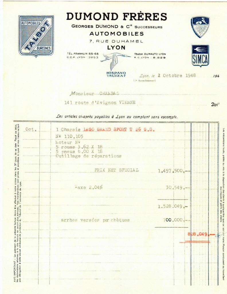 Vendue Poncet-Dumond & Cie (FRA), livrée 03/08/1948.