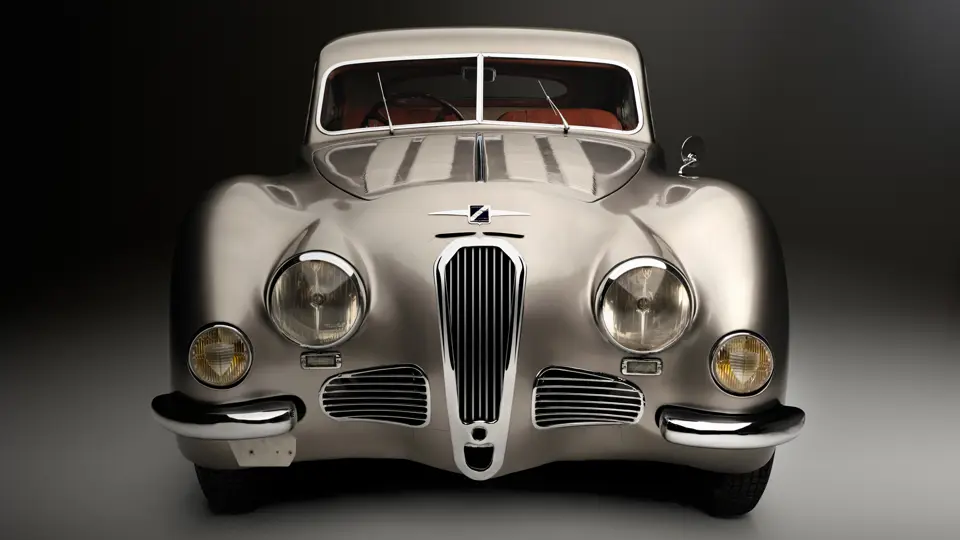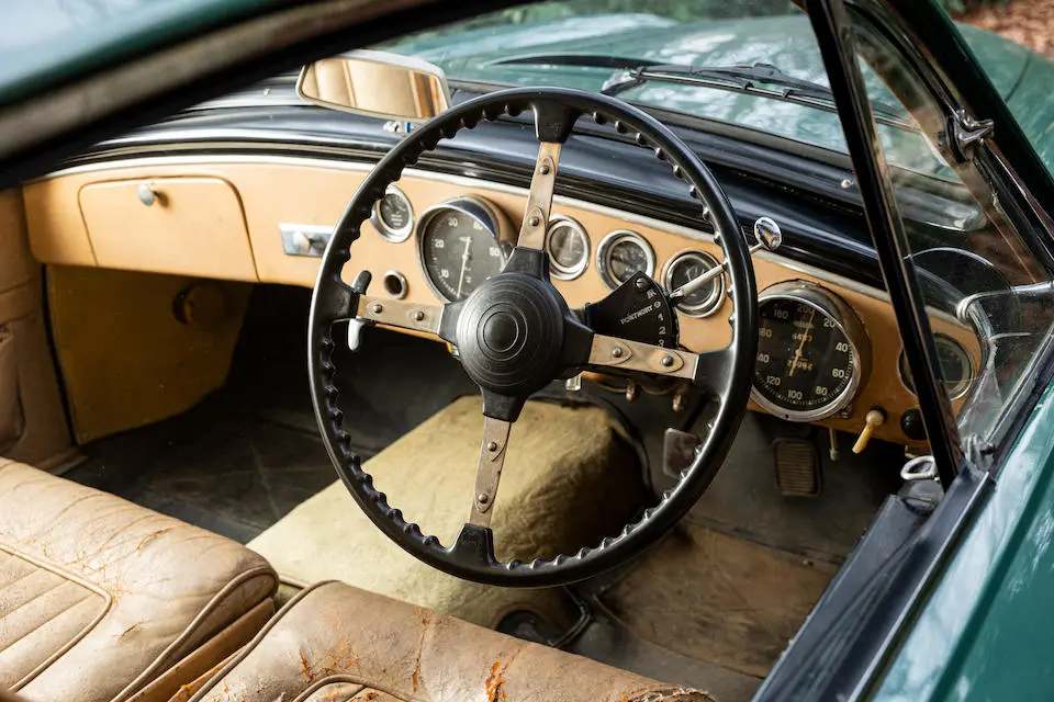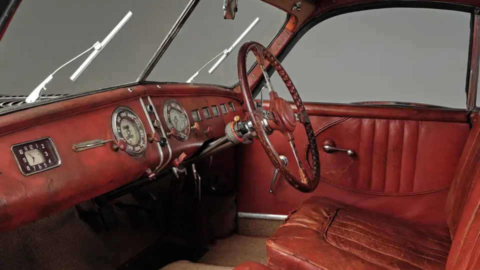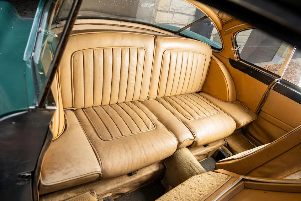 100.314 : 1948, T.26 Record Coach Surprofilé usine, Crème du Japon, cuir vert 54,