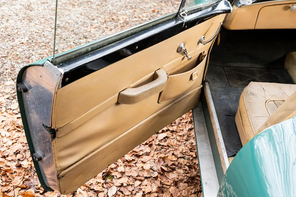 111.003 : 04/02/1954, T 26 Grand Sport (caisse 5302), jantes à rayons chromés à moyeux Rudge, chauffage/dégivrage, allume-cigares, Vert T.48, cuir beige 64.