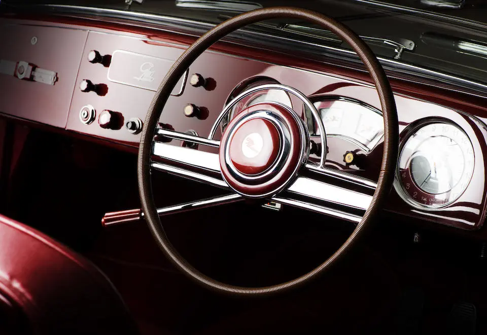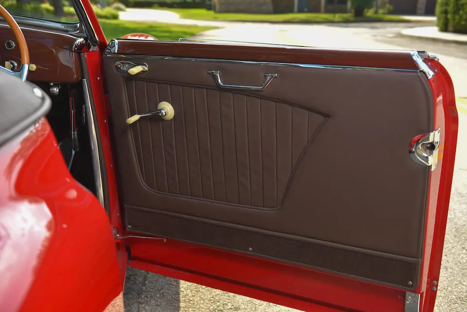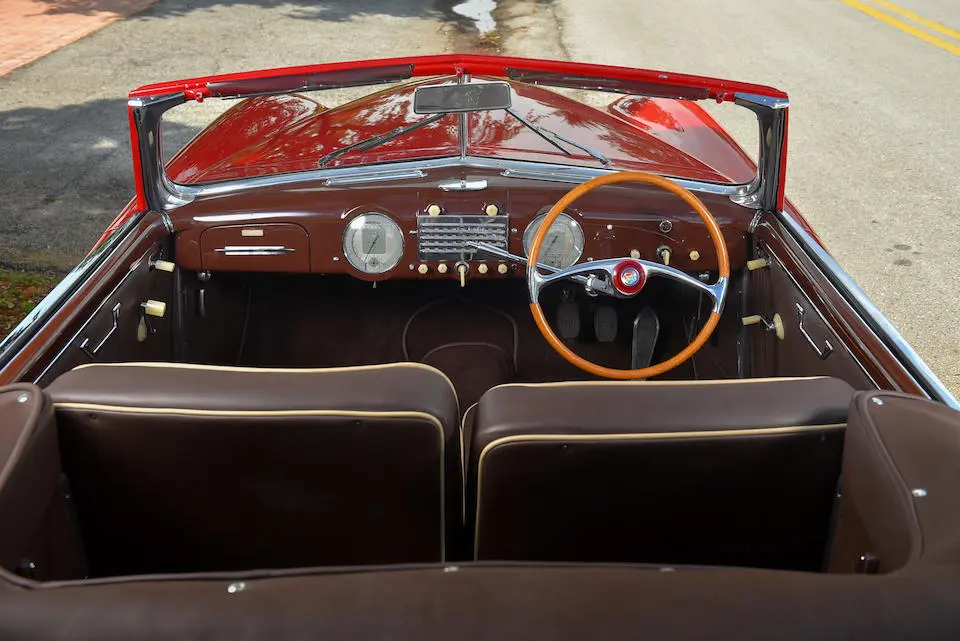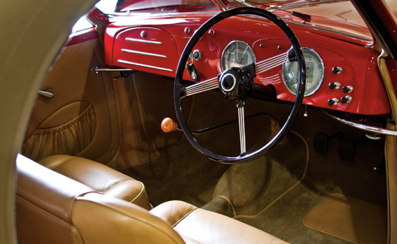 913.120 : 1939, Berline Turismo 5 places sans montants, Rouge, jantes crème, velours beige.
