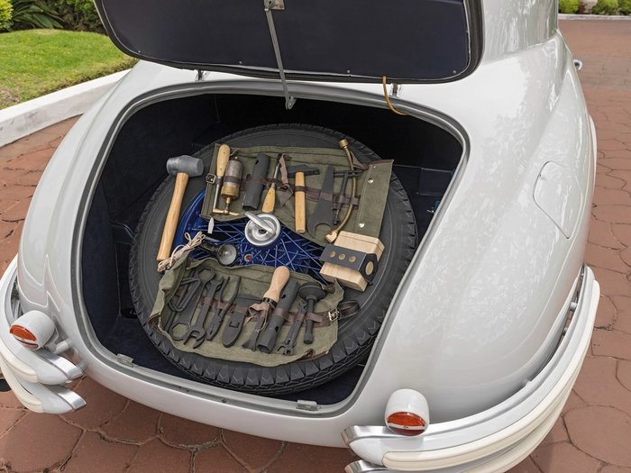 913.014 : 1939, Cabriolet par Gebrüder Tüscher, Zürich, (CH), 14e fabriquée, moteur 9293.059, 2 tons de gris.