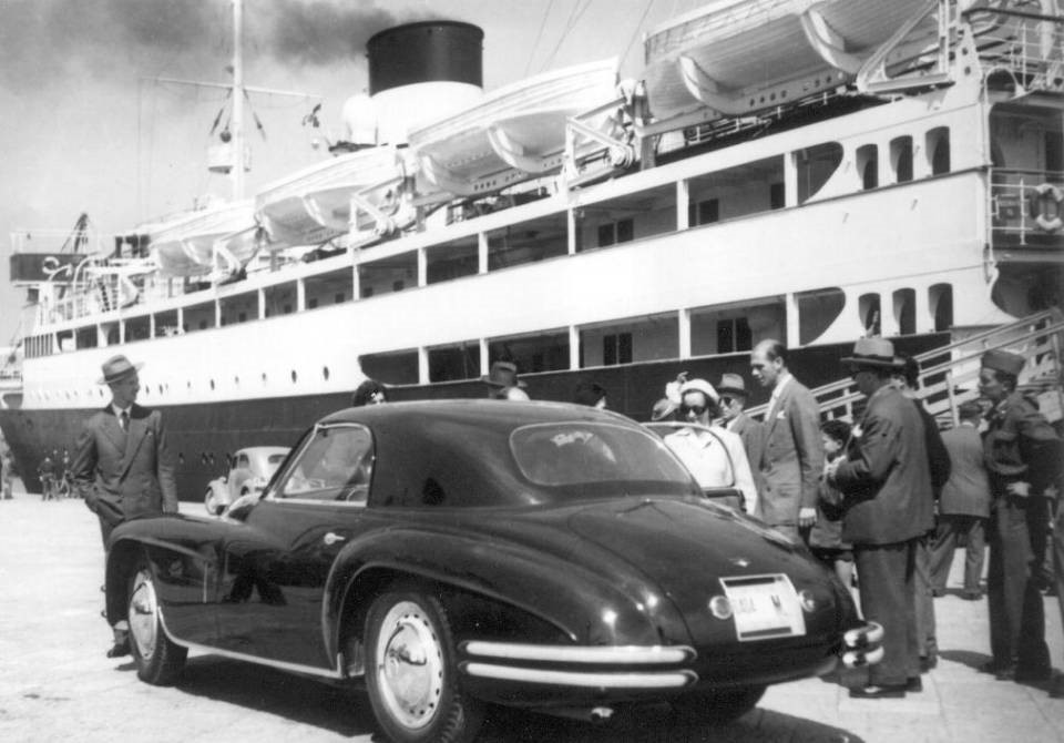 10/1946 : Salon de Paris (FRA), Farina expose la voiture devant le Grand Palais car les constructeurs italiens ne sont pas autorisés à y participer.