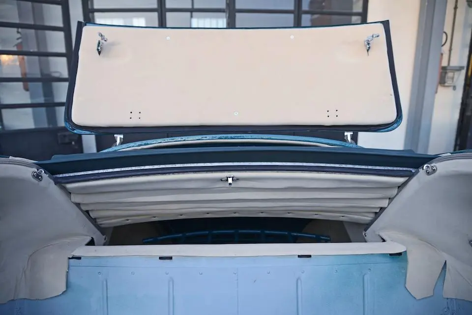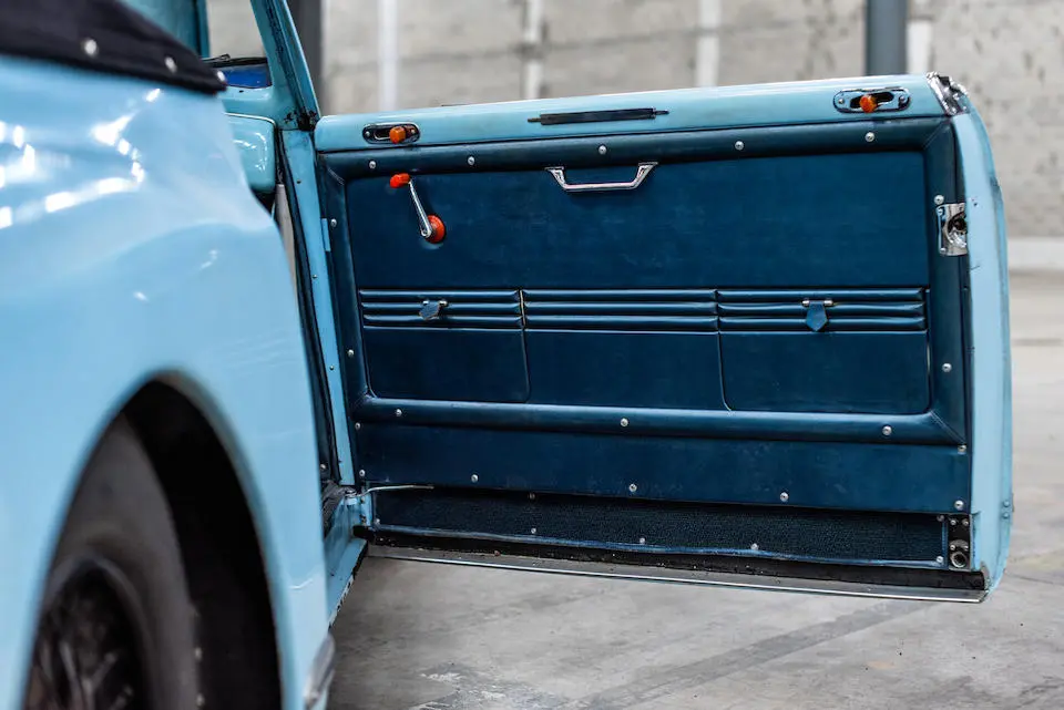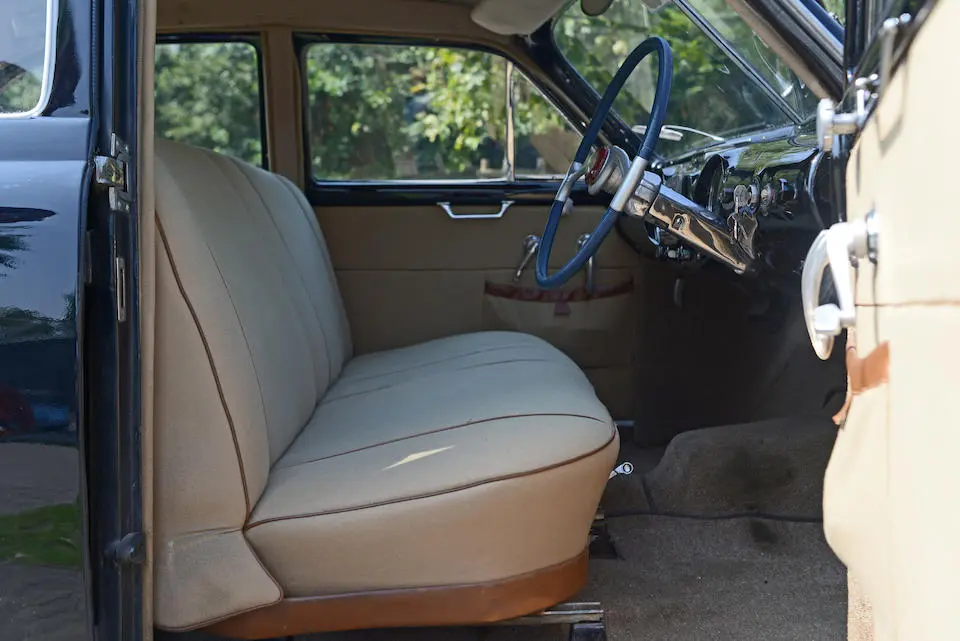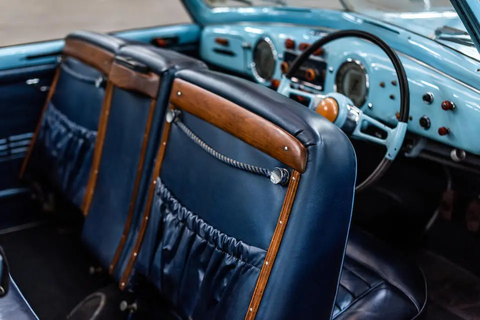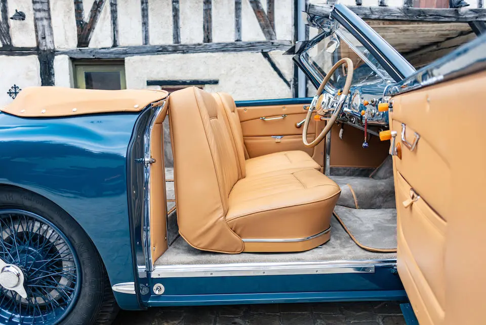 Remise en configuration d’origine, Bleu marine, cuir bleu clair.
