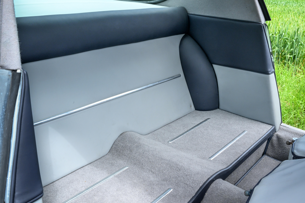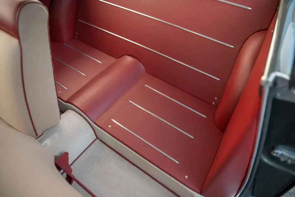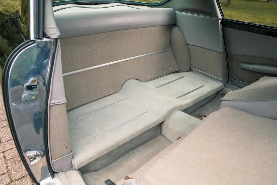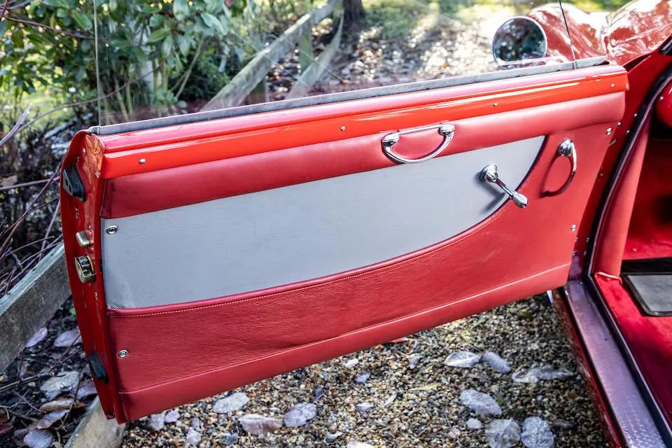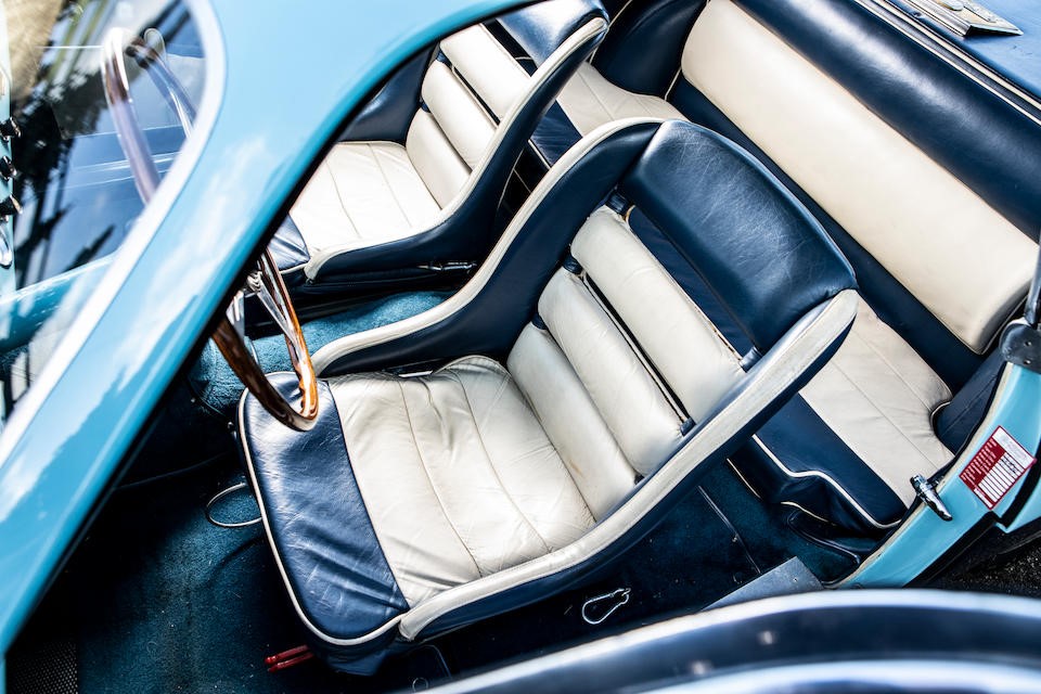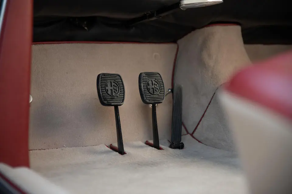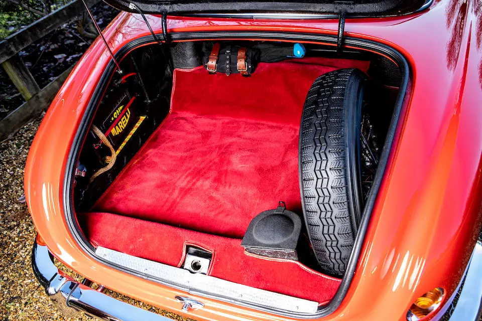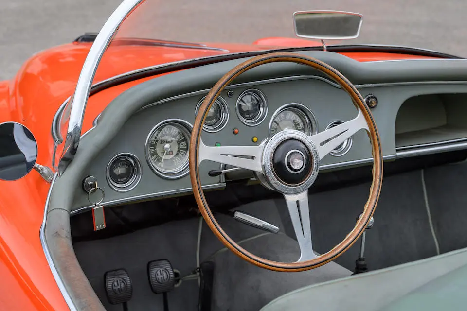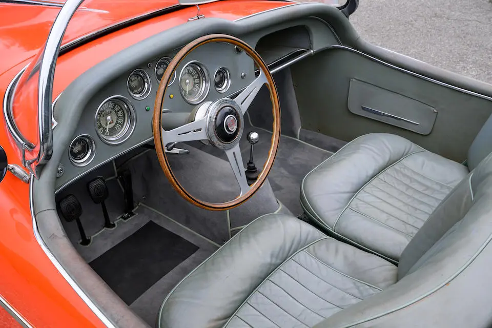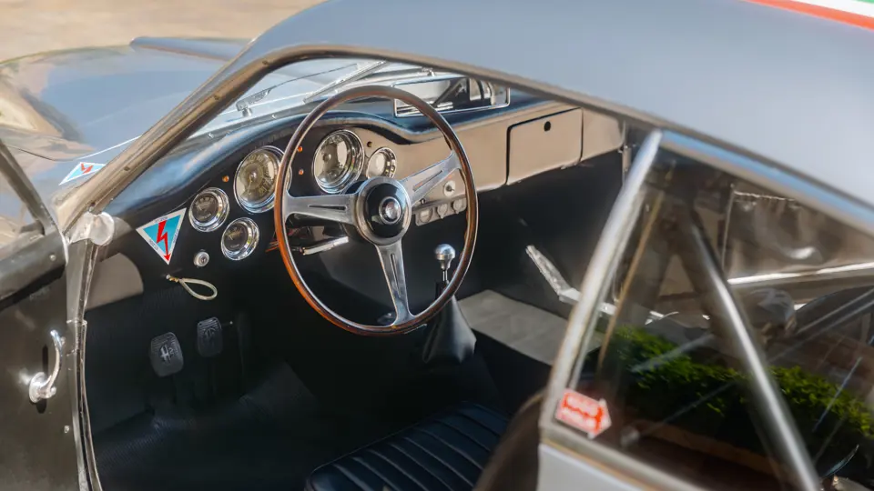 Pas de pare-chocs, jantes à rayons Borrani, levier de vitesses Nardi au plancher.