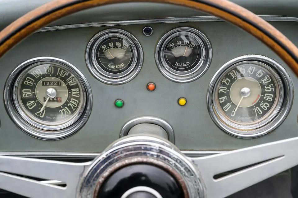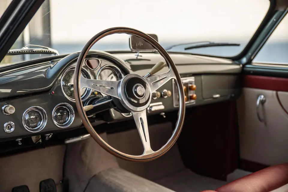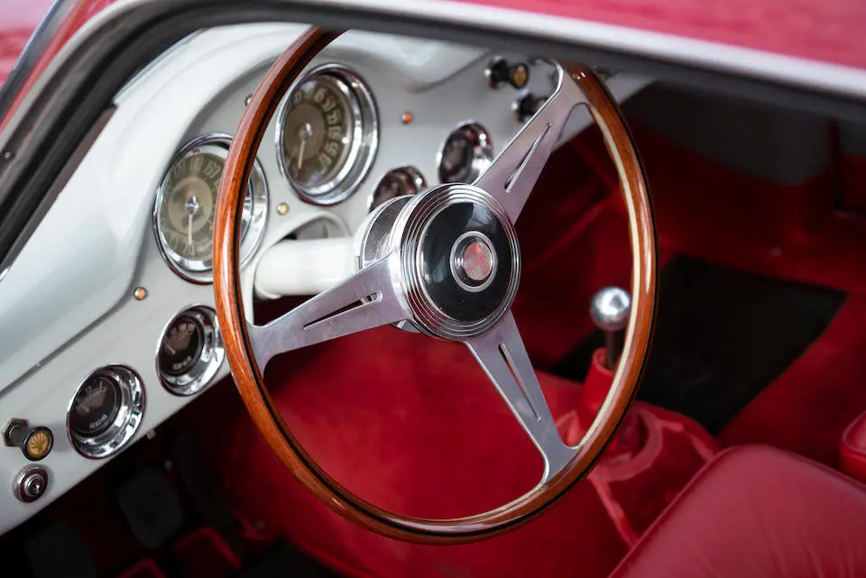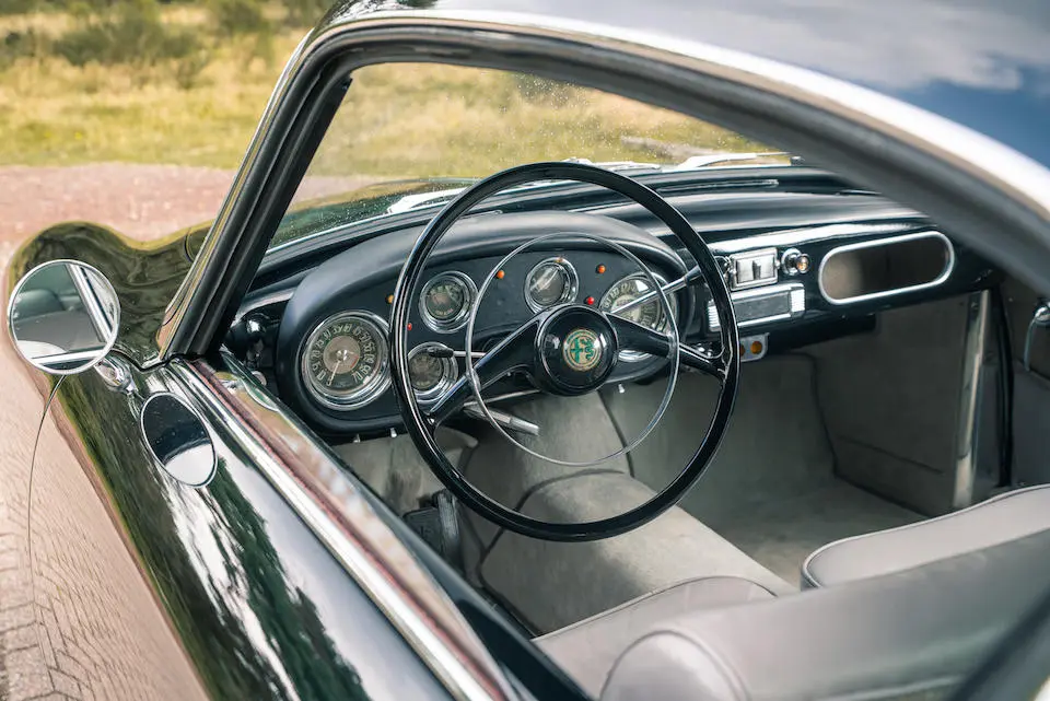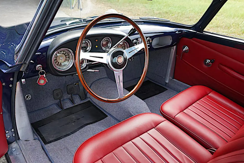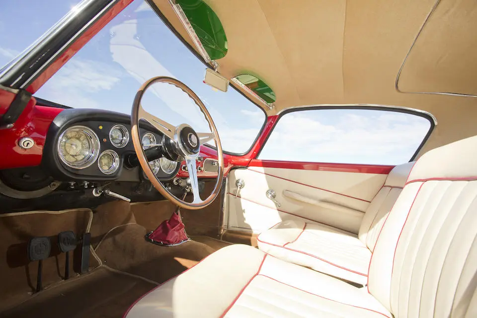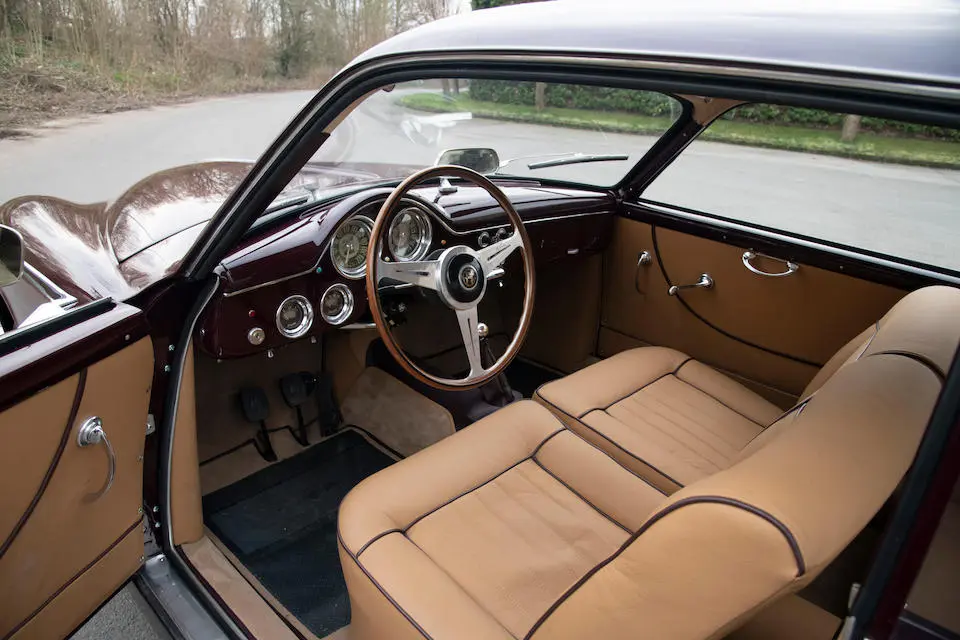 AR130800690 : 1954, Super Sprint Ghia, carrosserie aluminium, volant Nardi, levier de vitesses au plancher, jantes aluminium à rayons Borrani.