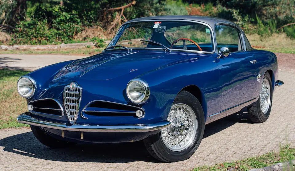 AR 1900C 02062 : 21/05/1955, 1900 C Coupé Zagato, moteur 1308.01045, Bleu clair/Bleu foncé.