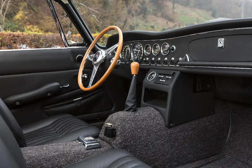 1214 : 1966, 1000 GT, moteur 173/207, jantes Borrani à fixation centrale, Grise, simili noir.