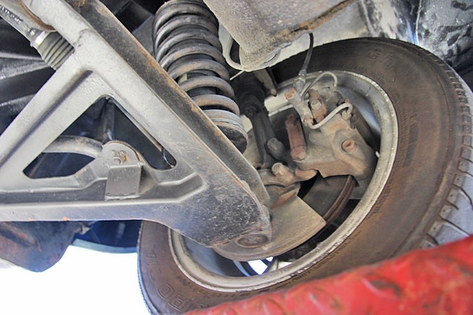 Suspensions avant et arrière indépendantes par leviers superposés en trapèze, combinés ressorts/amortisseurs et barres antiroulis.