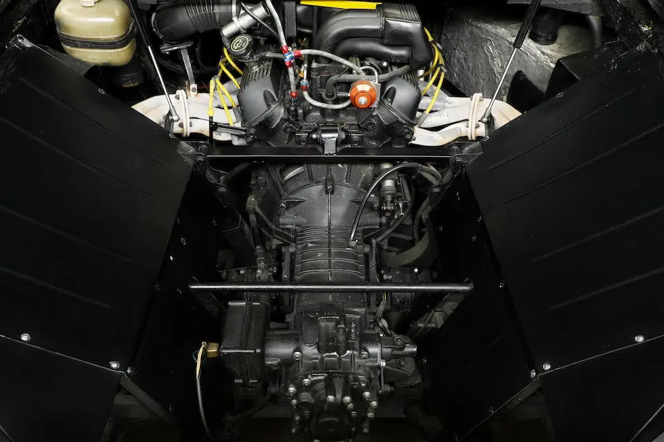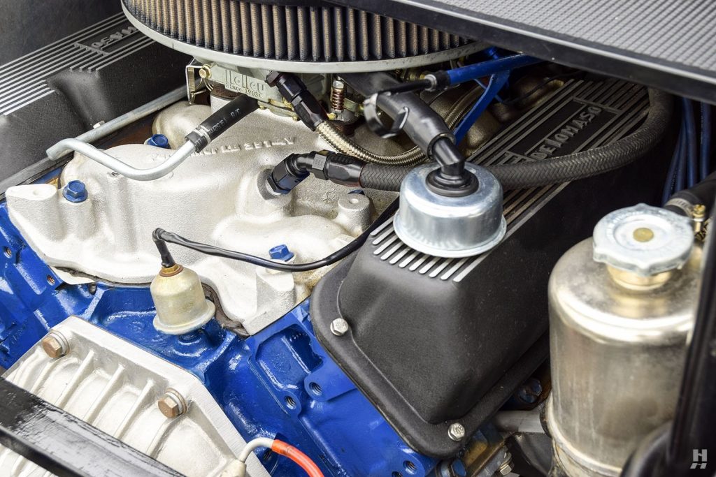 Moteur à injection V8 Ford Windsor 302ci (4950 cm3), 305 chevaux DIN et freins à disque ventilés Brembo identiques à ceux de la Ferrari F40, jantes 17 pouces.