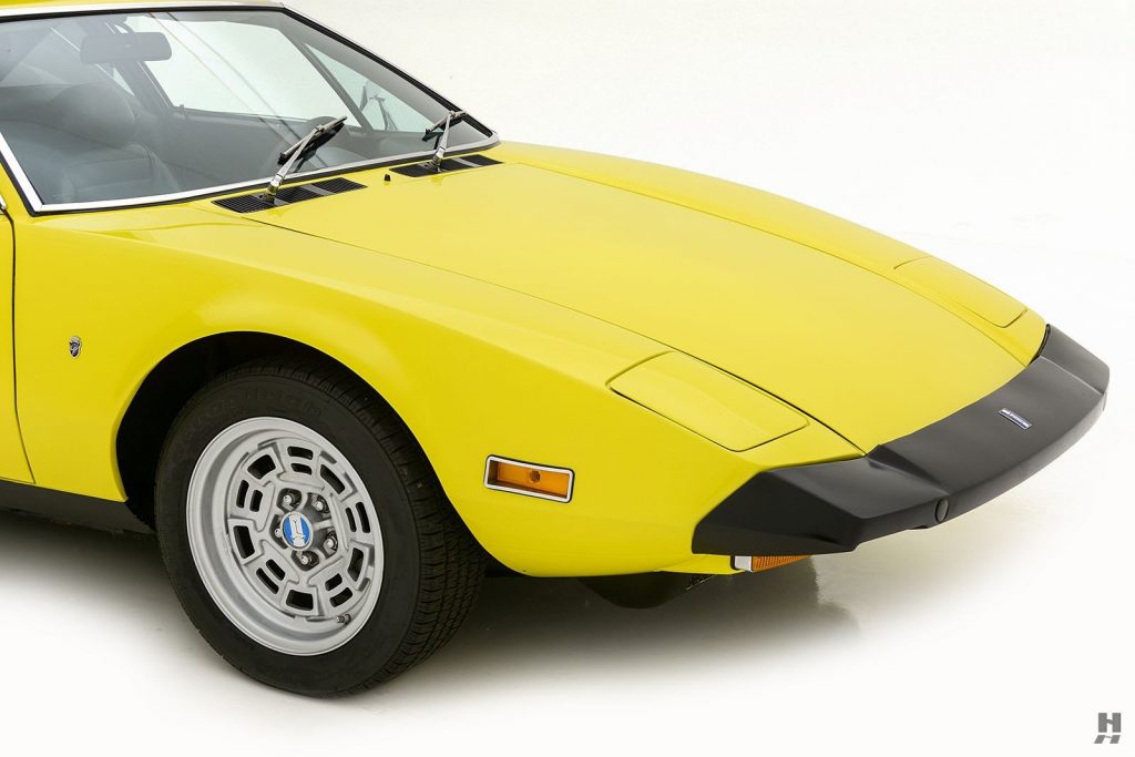 Carrosserie par Tom Tjaarda pour Ghia. La voiture sera construite chez Vignale qui fait partie du groupe De Tomaso.