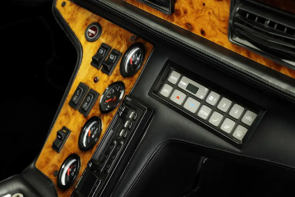 Finition améliorée avec sièges baquets garnis de cuir, tableau de bord garni de ronce de noyer, vitres et rétroviseurs extérieurs à commande électrique et climatisation.