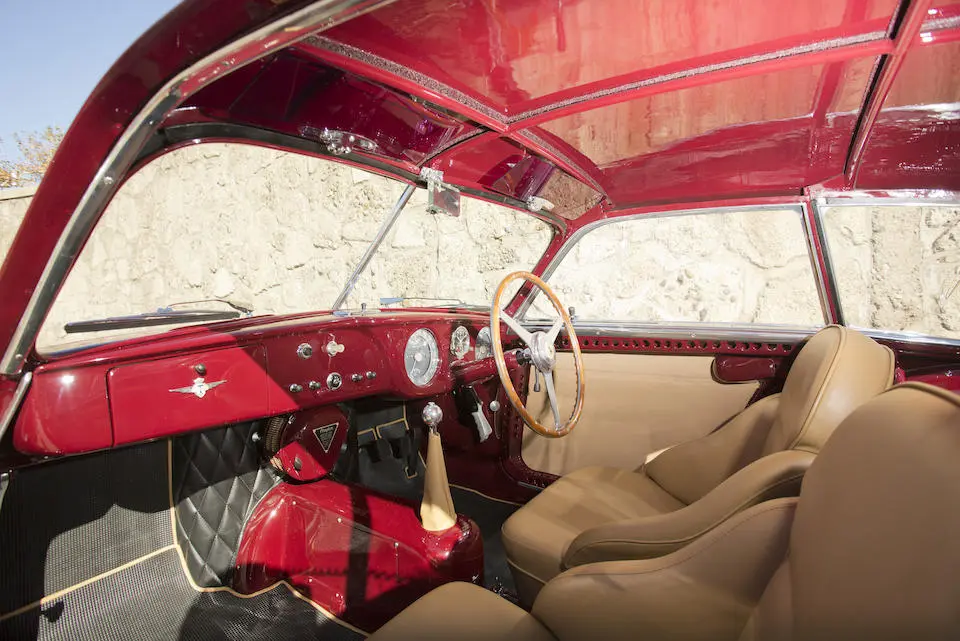 Recarrossée en berlinette Vignale style 1952, pas d’ouïes d’aile.