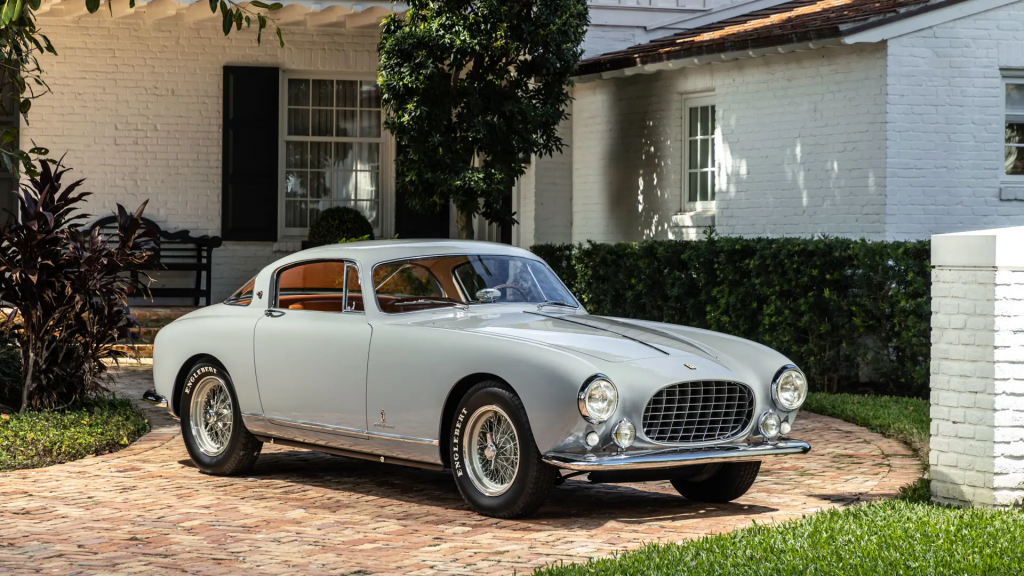 0421 GT : 21/09/1955, 250 GT Europa, Coupé Pinin Farina, gris fer, toit argent, cuir rouge.