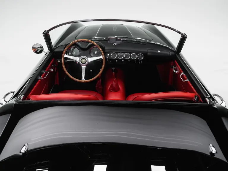 1501 GT : 19/12/1959, 250 GT Spyder California, 34e LWB, phares carénés, caisse acier, moteur Tipo 128D (0510D), boîte de vitesses Tipo 508C/525, arbres à cames Tipo 128C levée 9mm, taux de compression 9,3 :1, carburateurs 36 DCL3, 230 chevaux DIN à 7000 tours, noire, cuir naturel.